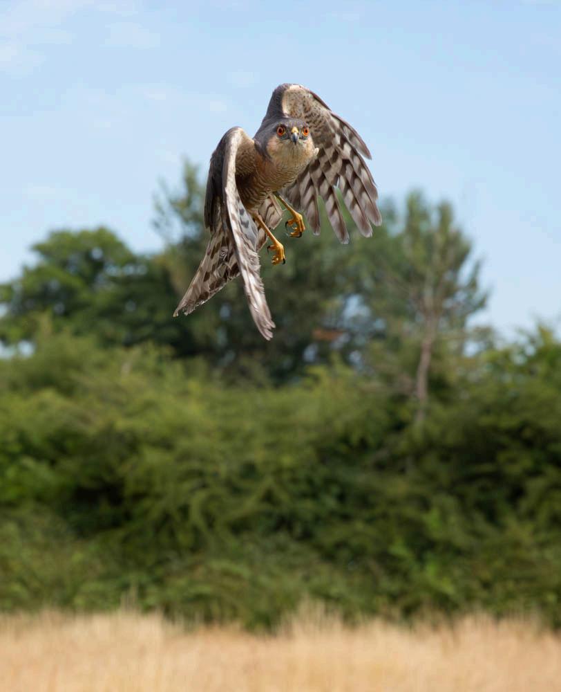 ThisisaNortherngoshawk!Lookingverysimilartoa sparrowhawk,butweighingALOTmore,thisusuallyelusive, deepforest-dwellingbirdwasfoundcollapsedinthemiddle ofGuildford,withavisibleheadinjuryandmoreinjuriestoher keelandback.