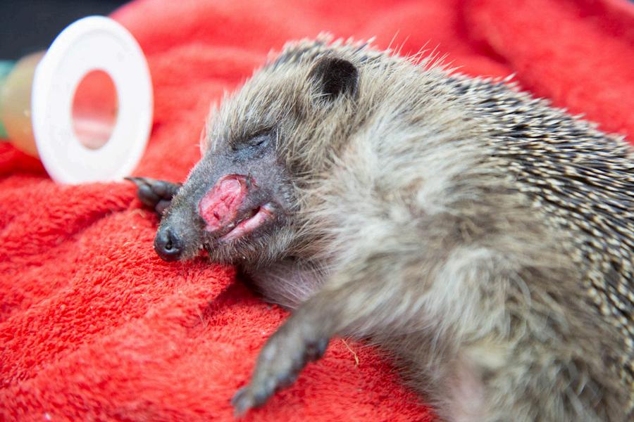 Thesearejusthalfoftheinjuriesthatthishedgehog sustained when she was accidentally struck by a strimmer.