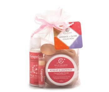 Get your glow on! This gift set comes in a reusable cotton bag and contains everything needed to cleanse, exfoliate and moisturize. Choose from 5 of our top selling scents. Each set contains a bar of natural soap, cocoa butter scrub with a scrub spoon and a 15 g lotion bar.
