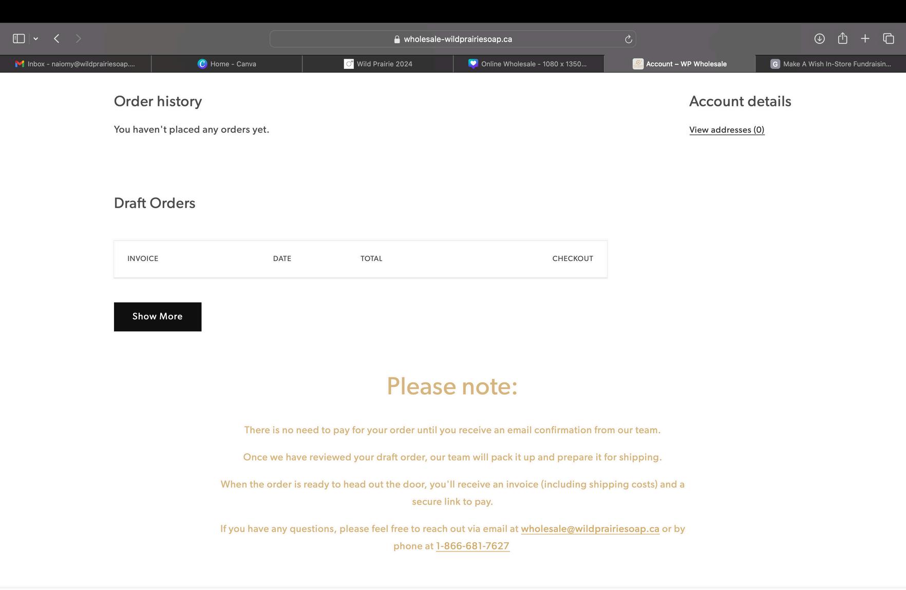 If you have any questions, please feel free to reach out via email at wholesale@wildprairiesoap.ca or by phone at 1-866-681-7627.
