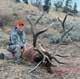 a rainy day. Conditions have to be just right. A fifteen-year-old burn is just about the perfect age to start dropping. The tree roots are dry and punky. A heavy rain gets it all soft and spongy.”
