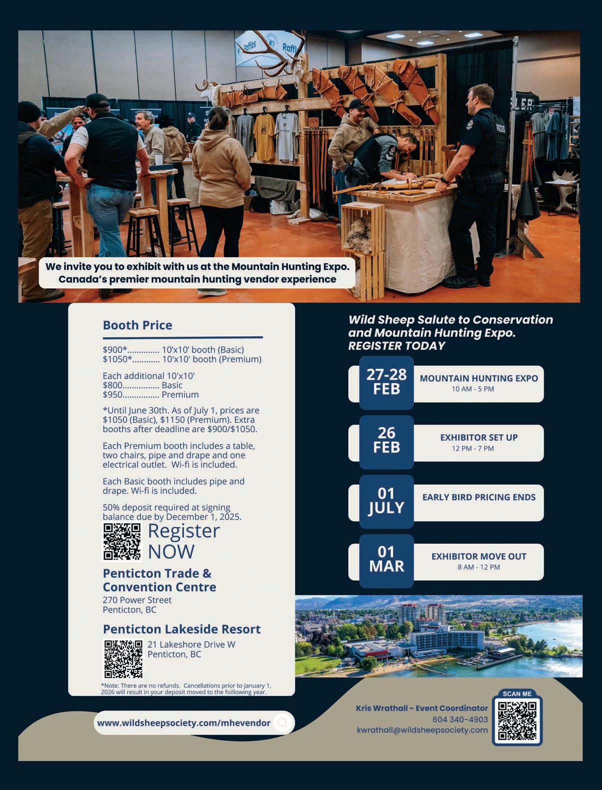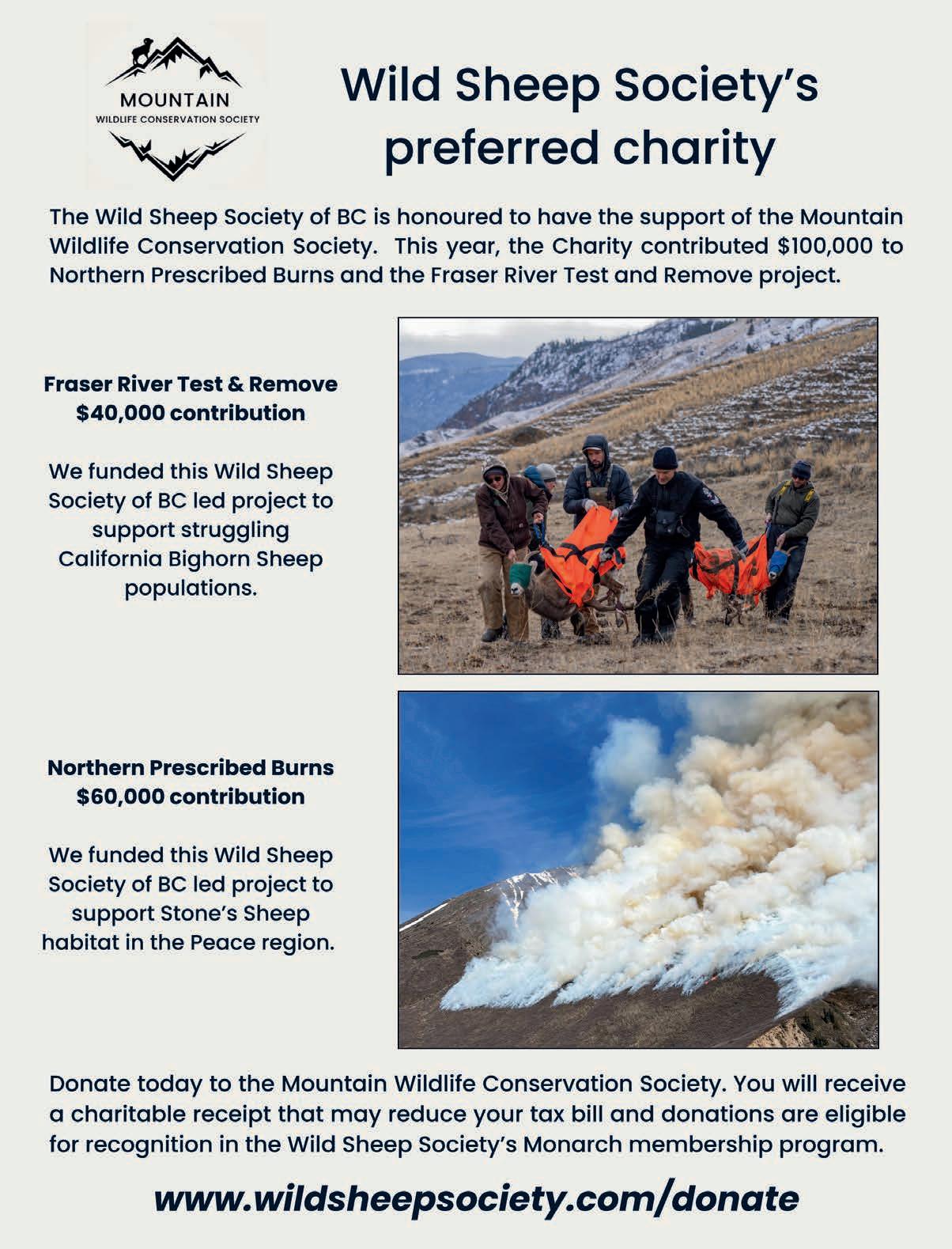 irstly, I would like to extend my heartfelt thanks to all our members for their continued support. Your unwavering dedication has been instrumental in helping the Wild Sheep Society of BC (WSSBC) achieve remarkable milestones in our conservation efforts this year. Together, we have taken significant strides toward preserving the health and sustainability of wild sheep populations across the province.