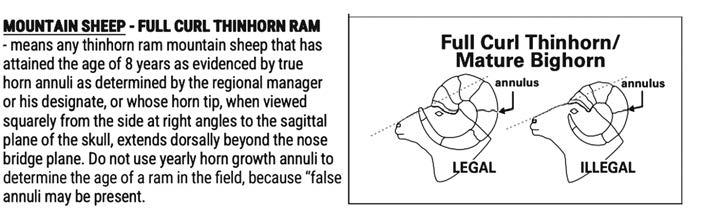 number of illegal rams. Despite my sentiments regarding BC’s thinhorn full curl regulations and cautions against age-based harvest, there is a good reason they advise against harvesting based solely on age. Many sheep hunters don’t have the experience to make a sound judgment call.