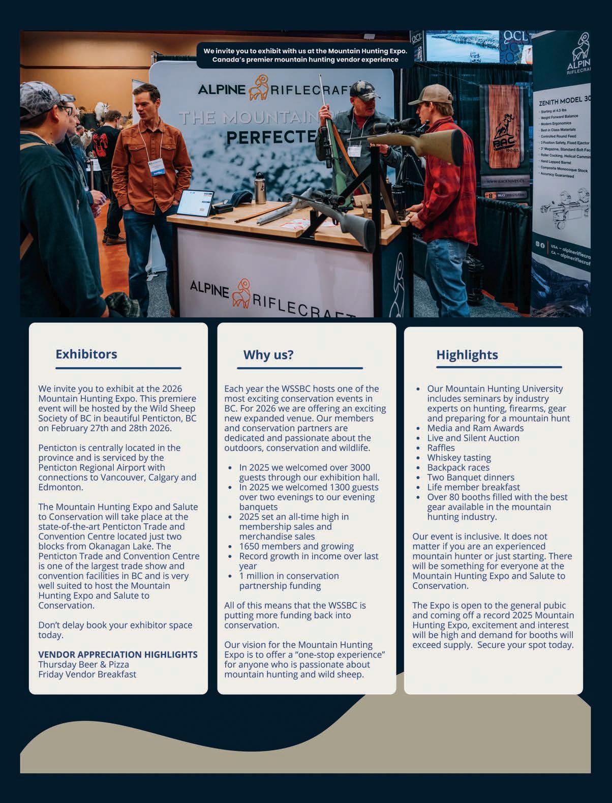 Let us continue to work together as stewards of the land, upholding the principles of ethical hunting and conservation. Your dedication and actions make a tangible difference, and I am confident that this season will bring not only success in the field but also progress in our collective mission to protect and preserve wild sheep across British Columbia.