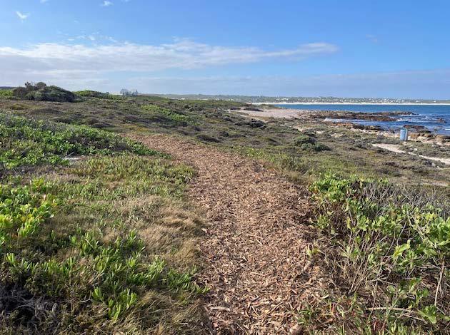 damage to the popular coastal walk. Boulders were dislodged onto the pathway, areas of dune plant life were uprooted, and all 10 sections of the boardwalk installed over previous years were smashed by the storm swell, much of it washed out to sea. The retrievable sections have been put to good use in the Romazini Valley bridge installed by Neale Grobler’s crew.