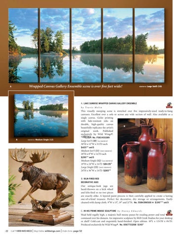 Our antique-look jugs are hand-thrown on a kick wheel and kiln-fired so no two pieces are exactly alike. A layered paint process is then carefully applied to create a lasting one-of-a-kind treasure. Perfect for decorative, dry storage or arrangements. Easily cleaned with damp cloth. 9"W x 13", 19" and 21"H. No. 5584396500 ❖ $195★★★ set/3 C. IN HIS PRIME MOOSE SCULPTURE b y D a n n y E d w a r d s