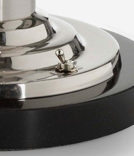 At the factory level, we altered the finish of our existing Nicodemus Lamp in brass, to a sleek polished nickel to better suit the design aesthetic. The designer’s specification of a toggle switch at the base of the lamp adds a touch of old-world charm while also meeting ADA standards.