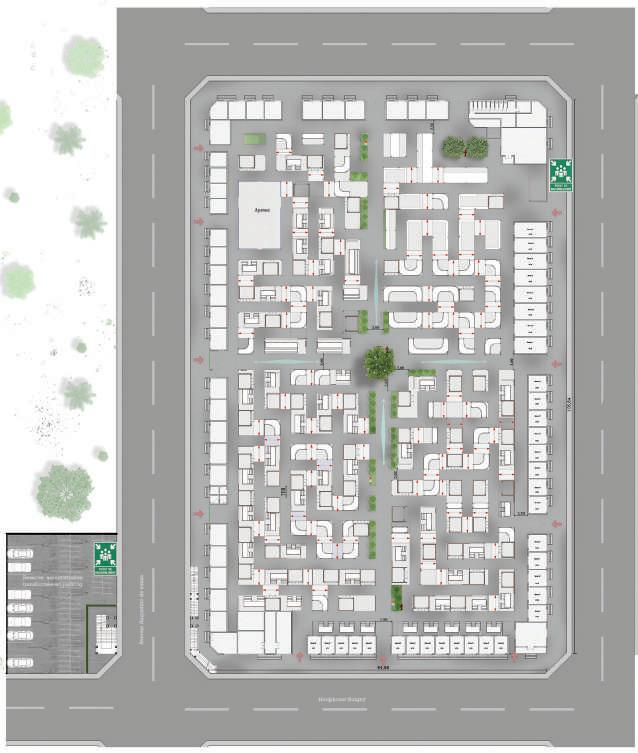 The concept is also based on a fractal and functional spatial organization, enabling harmonious adaptation to the surrounding facilities of the neighboring municipality of Treichville.