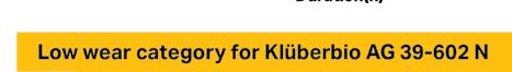 Klüberbio AG 39-602 N demonstrates 10 times lower levels of wear compared to competing products and better protection for gears due to its special composition and higher water resistance.