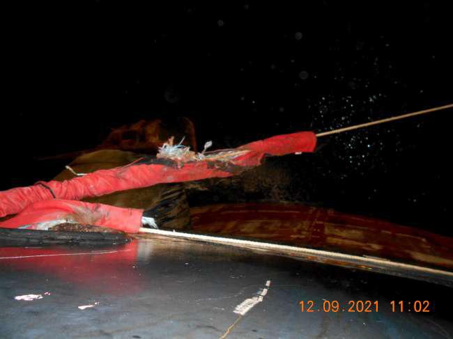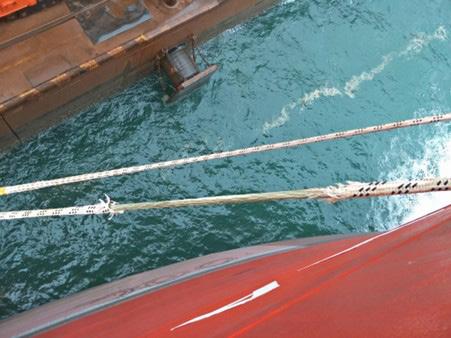 Figure 6: Broken Timm Master SBA rope onboard vessel. The snap-back was reduced thanks to the SBA.