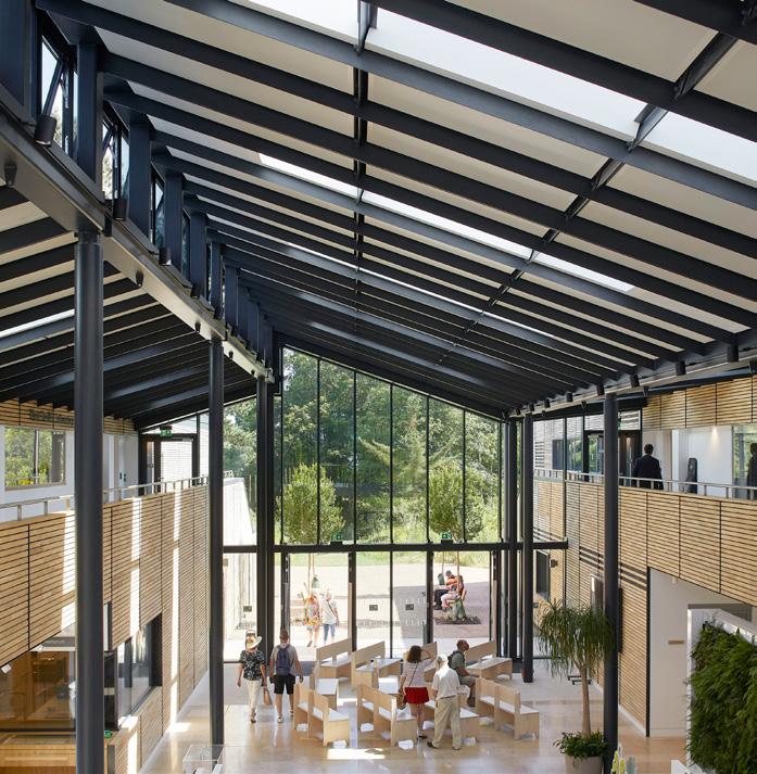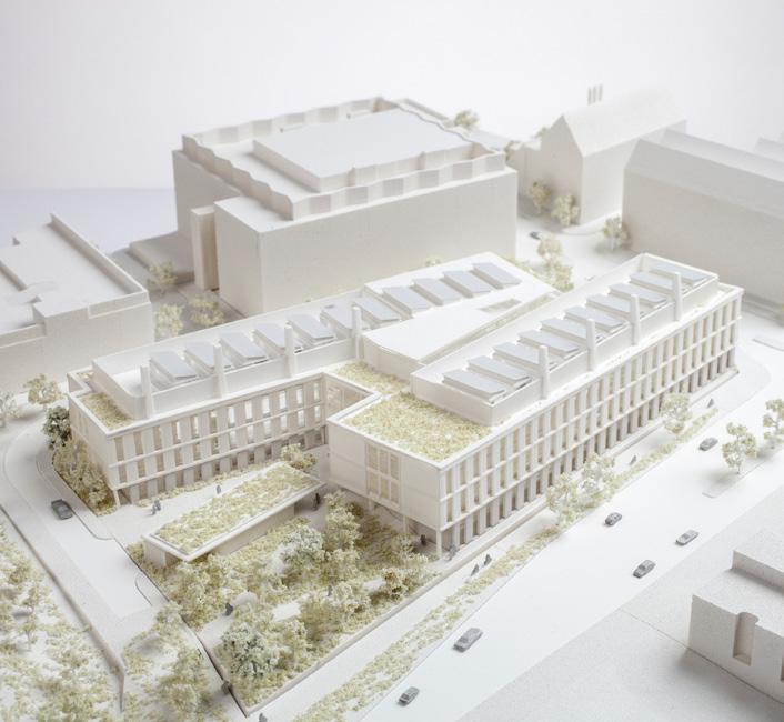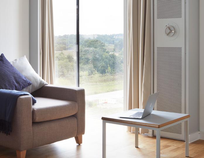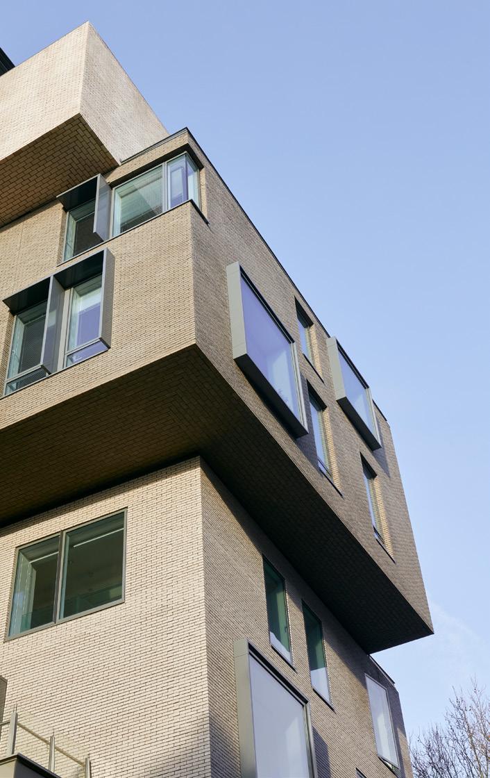 with natural ventilation and large, tripleglazed windows, individually angled to give each resident an expansive view across the campus, while the communal spaces were developed to promote interaction and social gatherings.