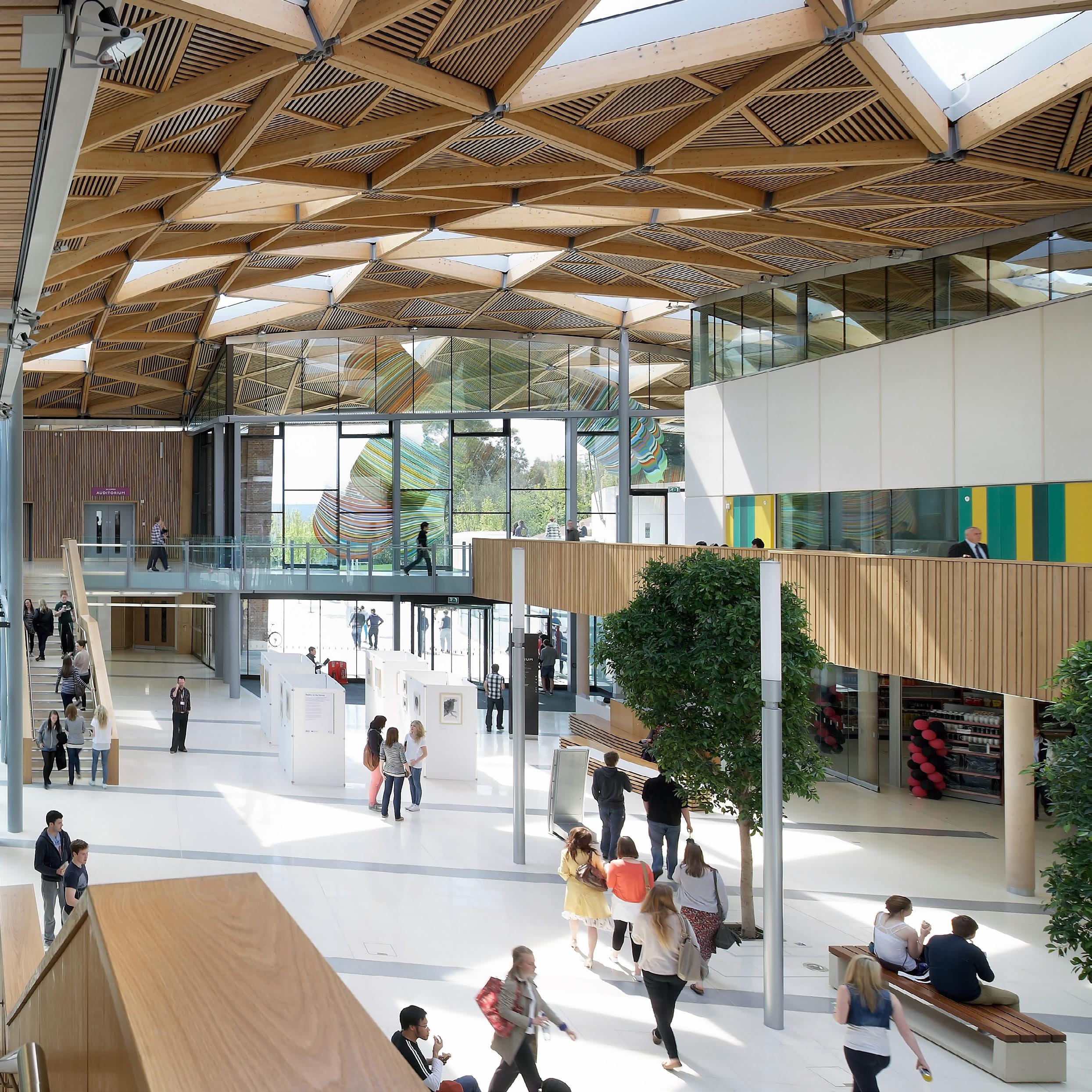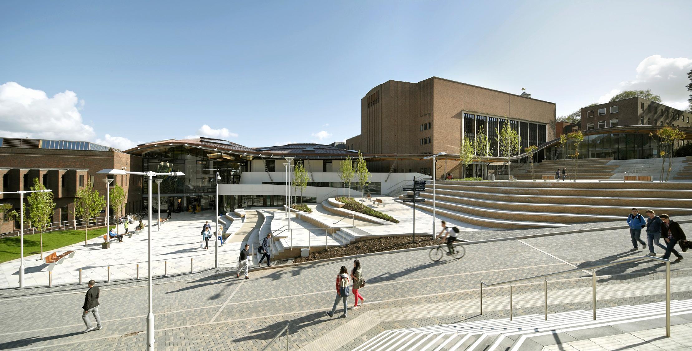 The Forum features an extended and refurbished library, new learning spaces, student services, catering and retail outlets, a landscaped plaza and new University reception as part of a £450 million capital investment programme which has propelled Exeter into the top ten UK universities.