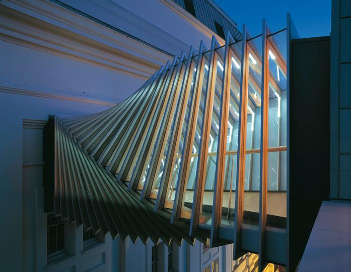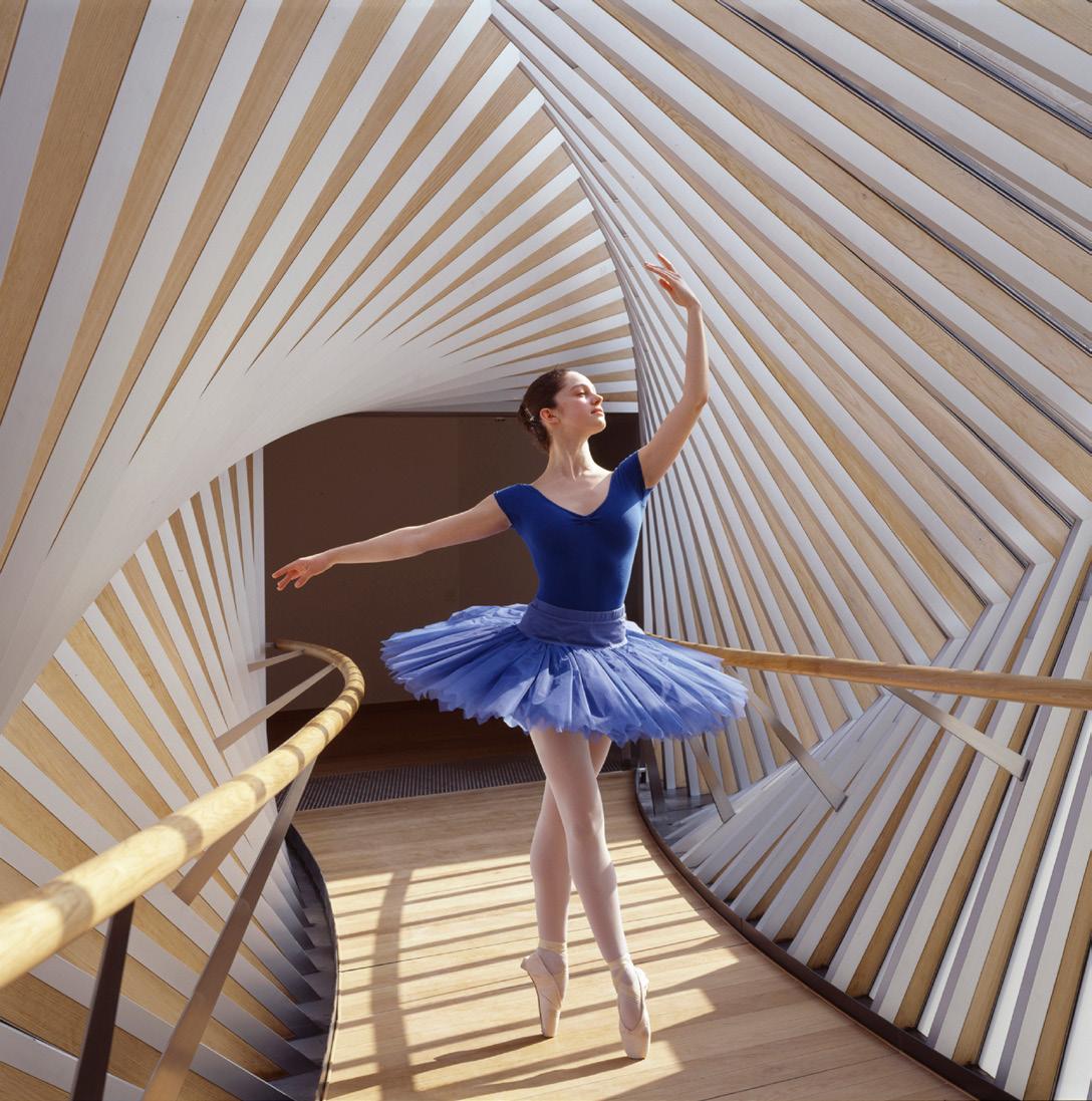 Twisting high above Floral Street in Covent Garden, the Bridge of Aspiration provides the dancers of the Royal Ballet School with a direct link to the Grade I listed Royal Opera House. The award-winning design addresses a series of complex contextual issues, and is legible both as a fully integrated component of the buildings it links and as an independent architectural element.