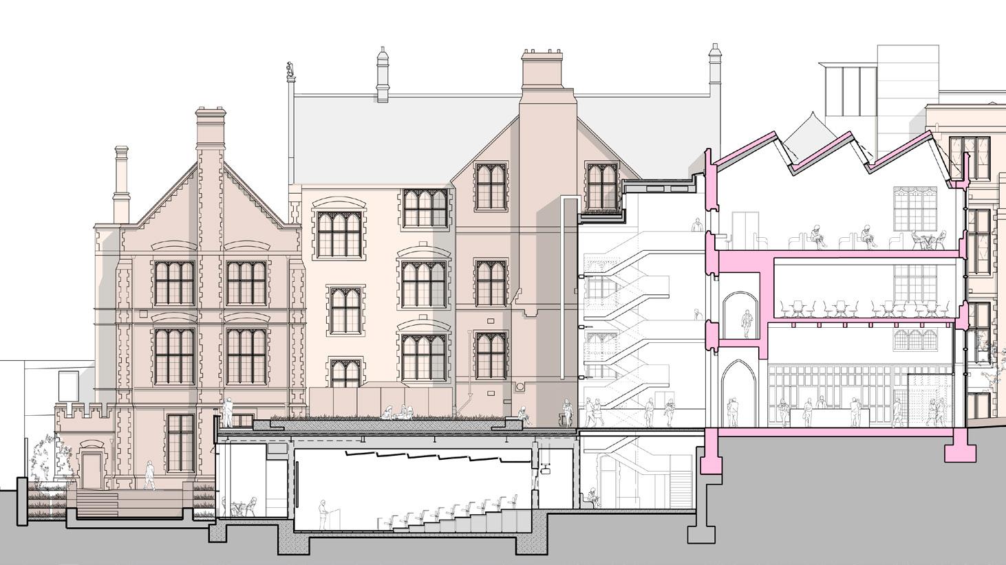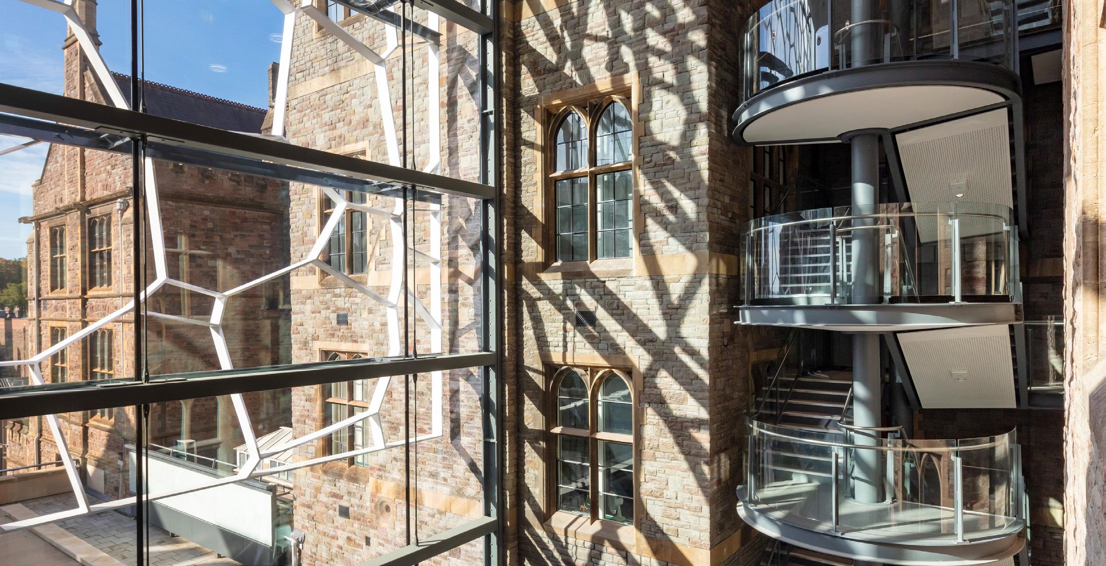 Working within a masterplan for the wider site, the project combines elements of new build with the extensive refurbishment of several existing buildings. Two new external courts will also be created as part of the project through the strategic removal of existing buildings. The landscaped courts will open up the site, improving the setting of the new and existing buildings, and creating considerable amenity value for the University and the wider public in the heart of the historic city.