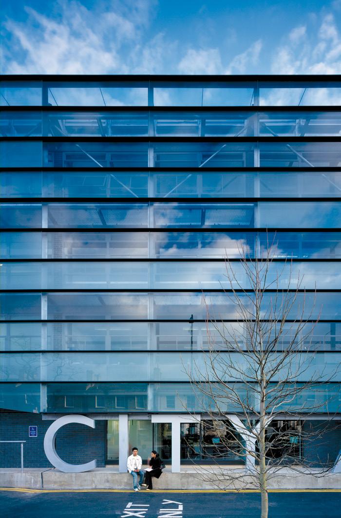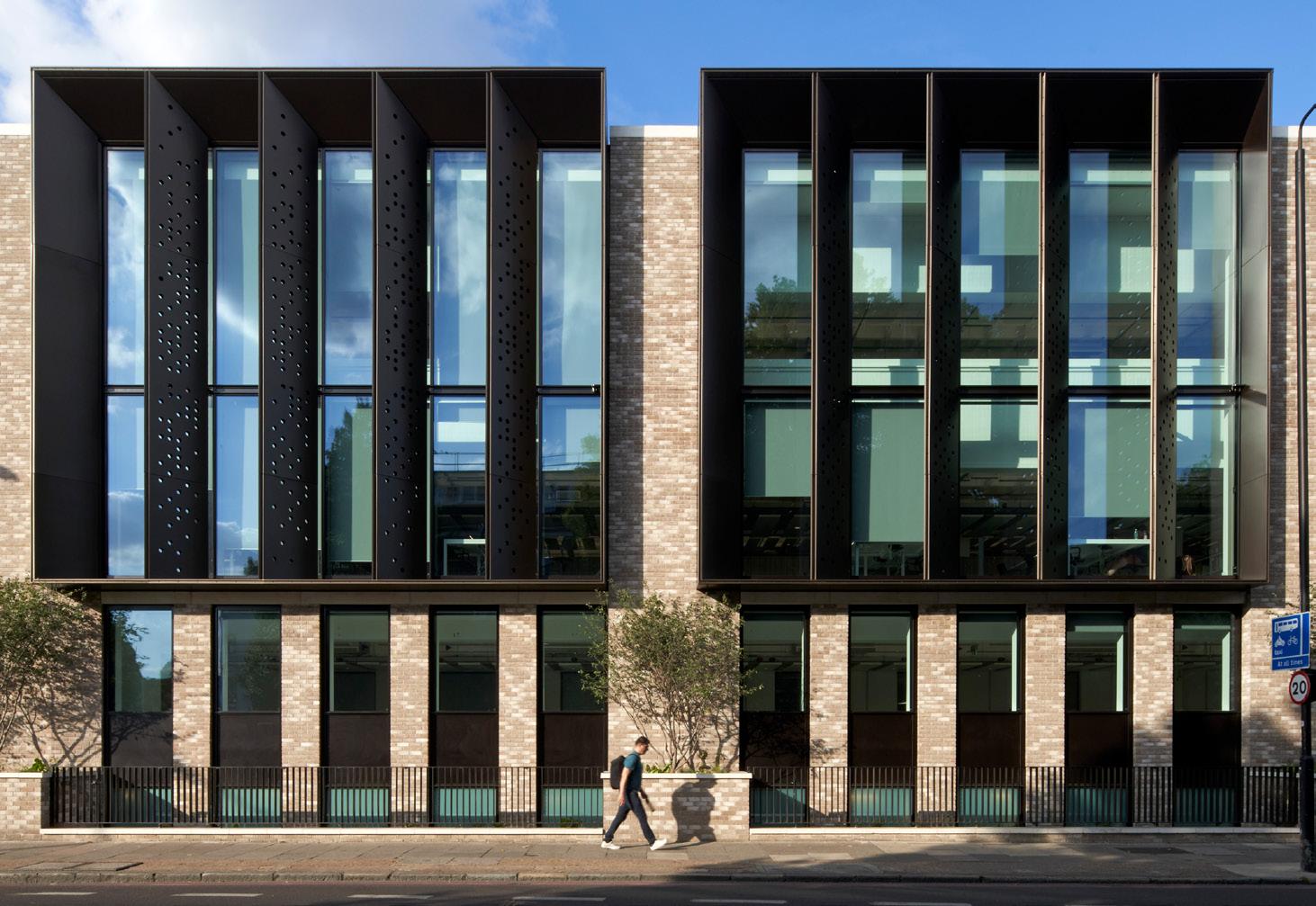 The upgrading represents an innovative exemplar in the regeneration of this building type, which is common to the education sector. A dramatic new glass skin, open at the top and bottom, sits a metre in front of the existing 80m façade on the Camden Road frontage. This buffer zone modifies the internal environment of the existing building, allowing occupants to open the windows for ventilation without suffering noise or pollution from the busy road outside.