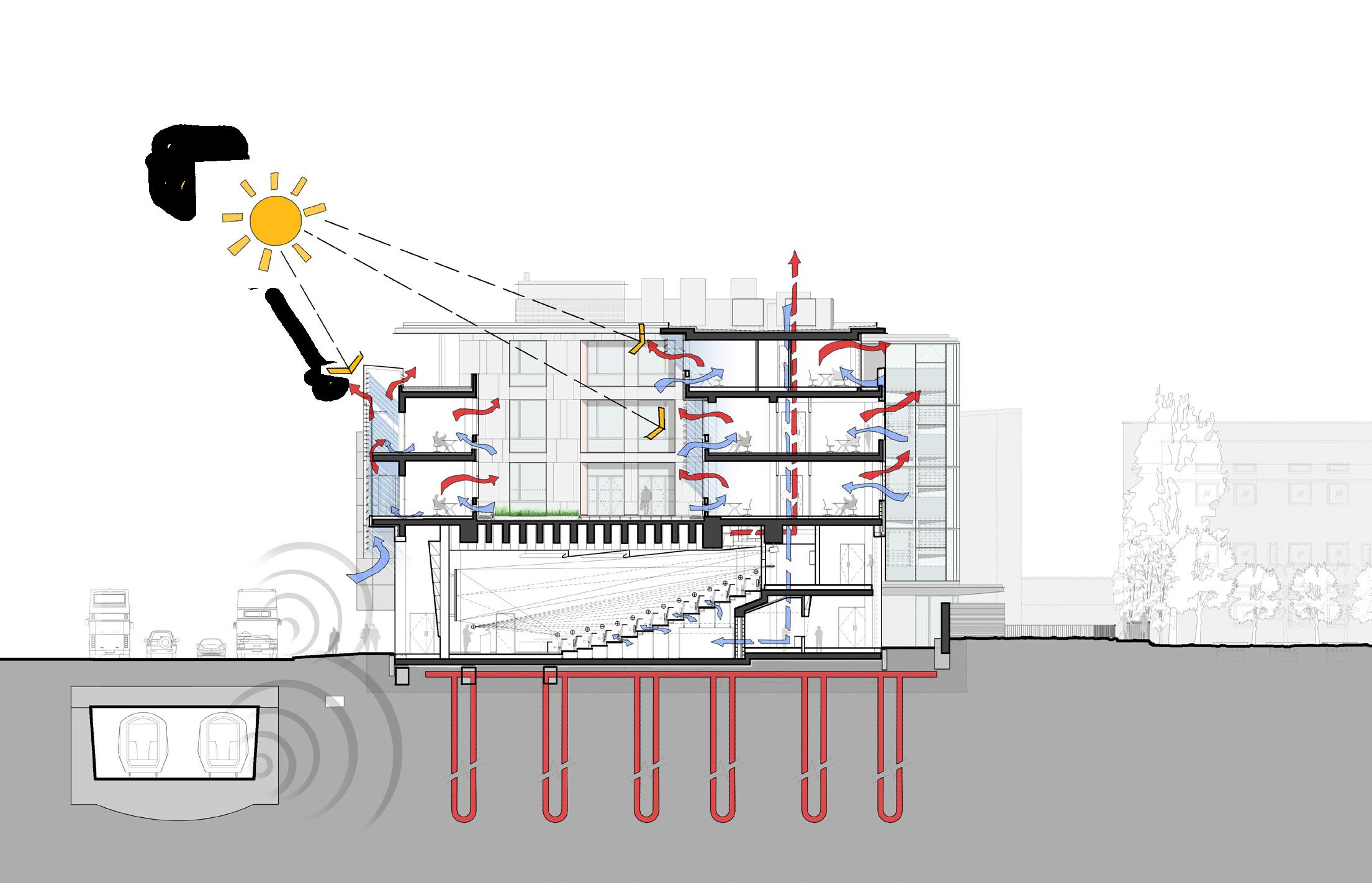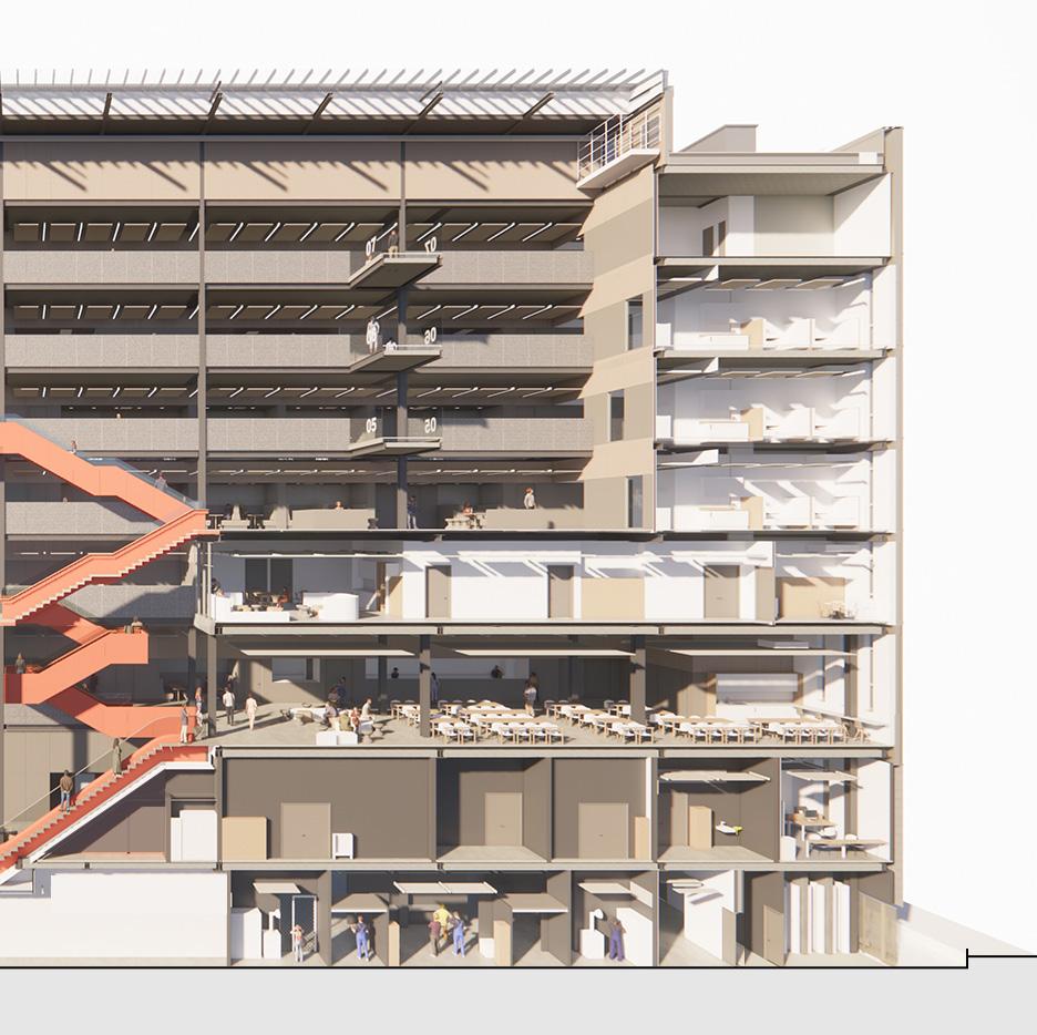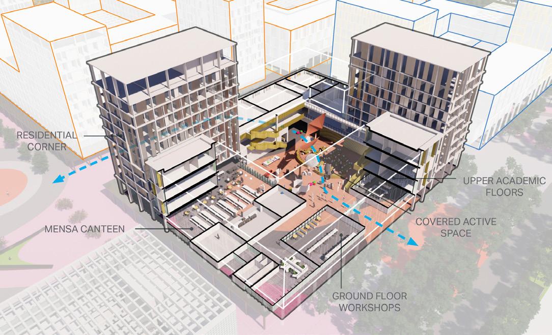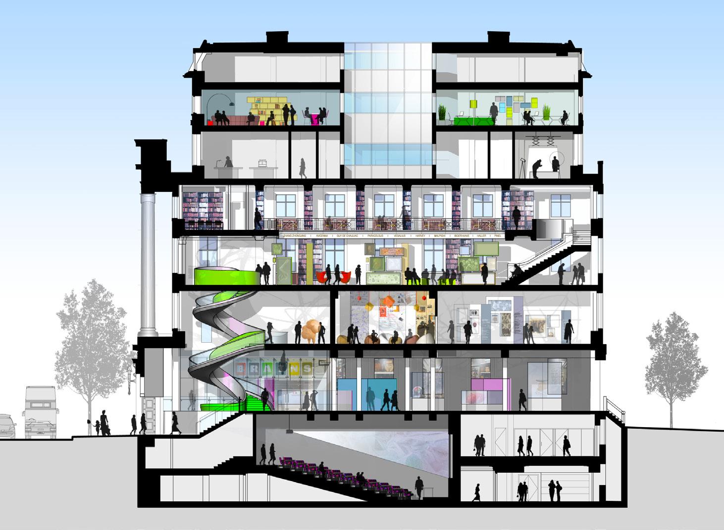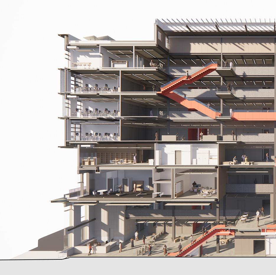informal teaching and learning while a rooftop terrace provides expansive views over the city.