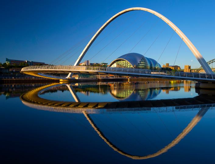 The design is based on two graceful parabolic curves of over 100 metres, one forming the deck and the other supporting it and spanning between two new islands running parallel to the quaysides. Opening like an eyelid, the innovative bridge lets shipping on the Tyne pass beneath. For pedestrians and cyclists, this landmark structure links Newcastle’s quayside with Gateshead Quays – the new arts and cultural quarter to the south. It won the 2002 RIBA Stirling Prize.