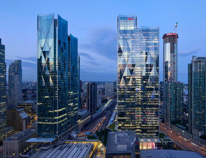 CIBC Square will provide a major new mixed-use development and transport hub at the heart of the financial district. The scheme includes twin 250m-high towers flanking a rail corridor and linked at high level by a sky park, plus a new bus terminal for Metrolinx and connections into Toronto’s Union Station, subway and lightrail systems.