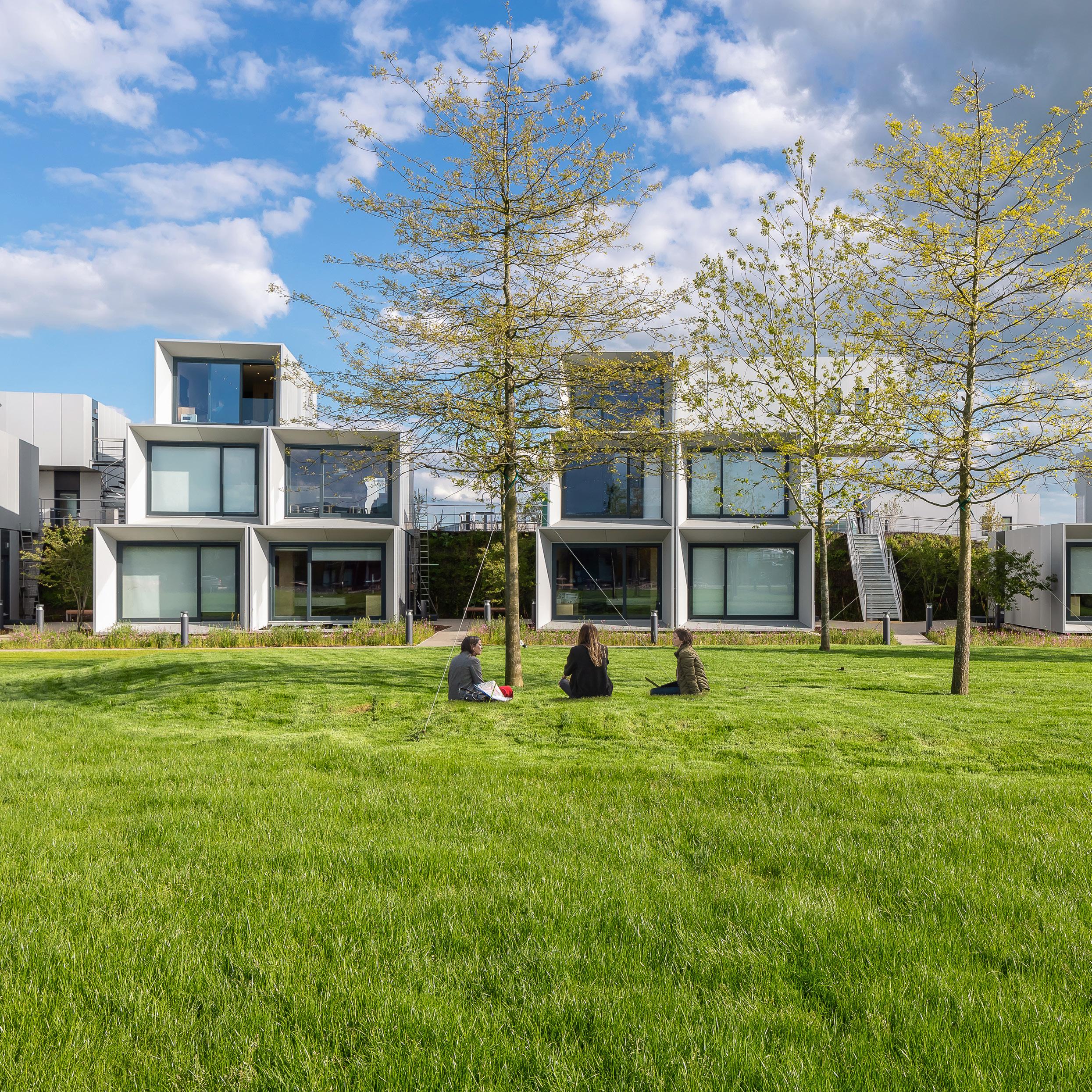 WilkinsonEyre delivered the undergraduate village and associated student facilities for the Dyson Institute of Engineering and Technology based on the Dyson Malmesbury Campus. The landscaped village comprises of 62 timber modular housing pods, which were fabricated off site, with communal amenities and a central social and learning hub, the Roundhouse. As well as establishing a new typology in student accommodation, the project breaks new ground in the design, masterplanning and precision engineering of truly modular prefabricated building technologies for rapid on-site construction.