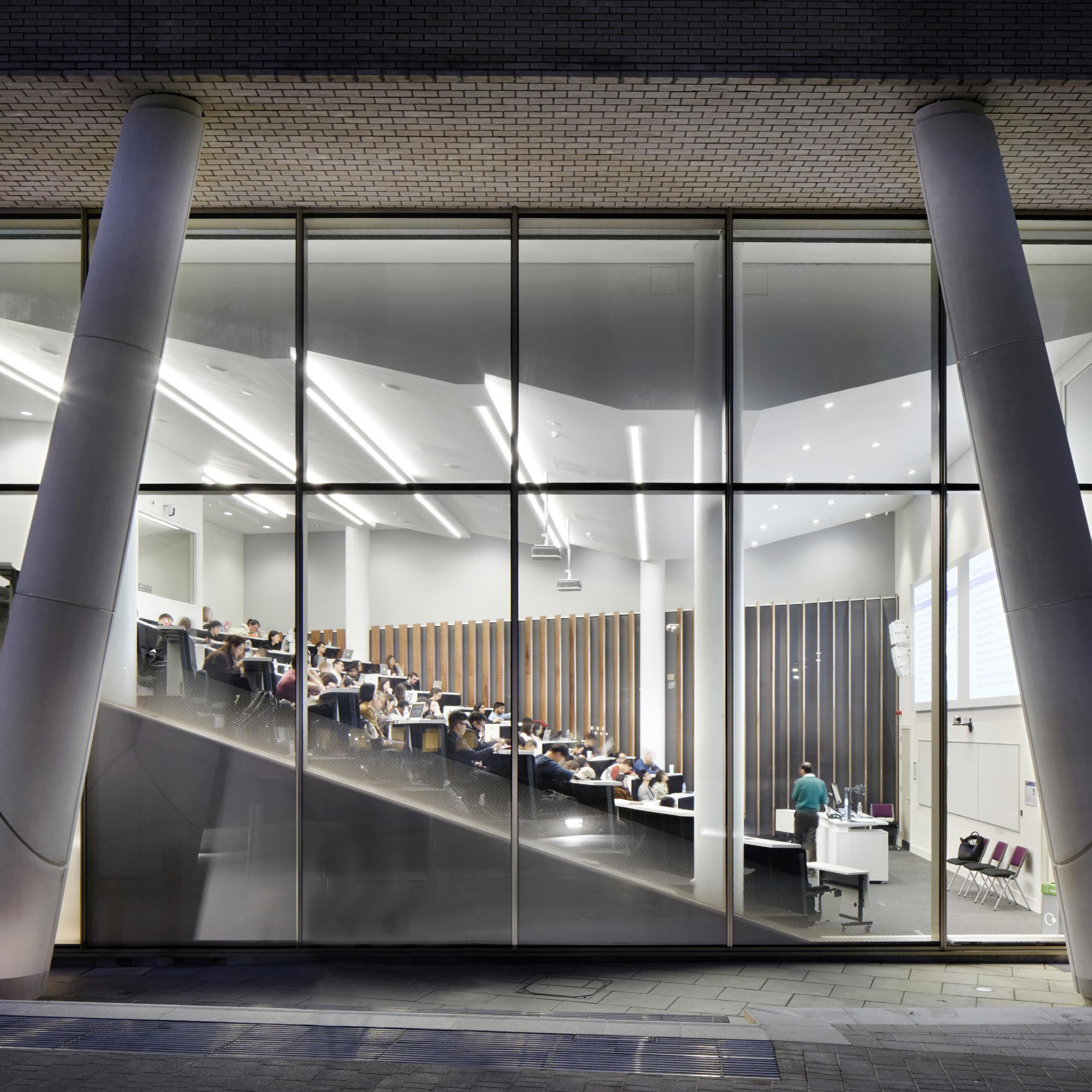 The ground floor of the Graduate Centre comprises a glass-sided 200-seat lecture theatre with a large foyer/café space and flexible graduate study areas. Upstairs are dedicated graduate student services, as well as seminar rooms and a ‘Harvard-style’ teaching facility.