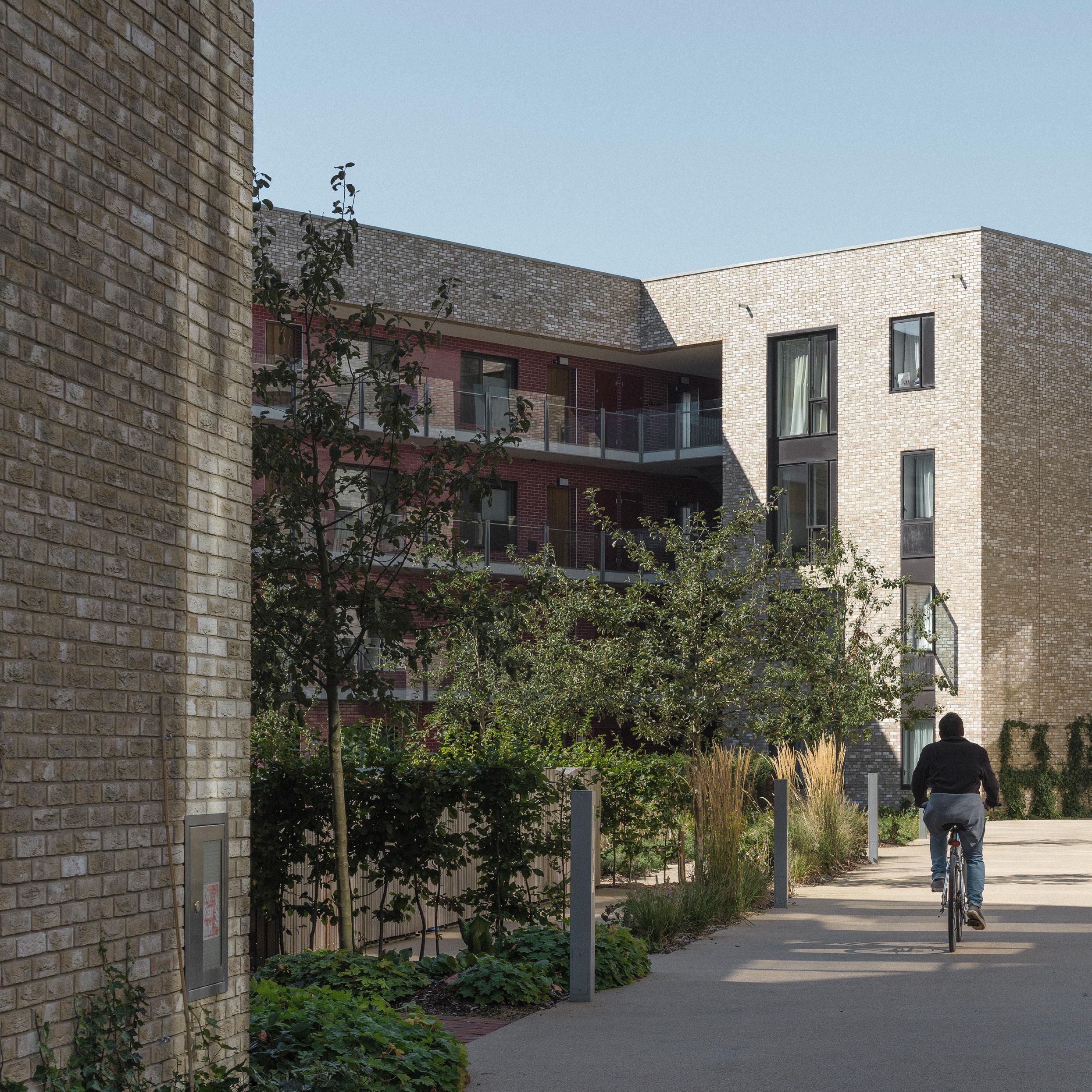 All residential units were designed to the former Code for Sustainable Homes Level 5. 117 one and two-bedroom apartments are configured within three five-storey blocks. Shared amenity space is provided by roof terraces and an internal courtyard. Most units are dual-aspect, with good day lighting, cross and natural ventilation.