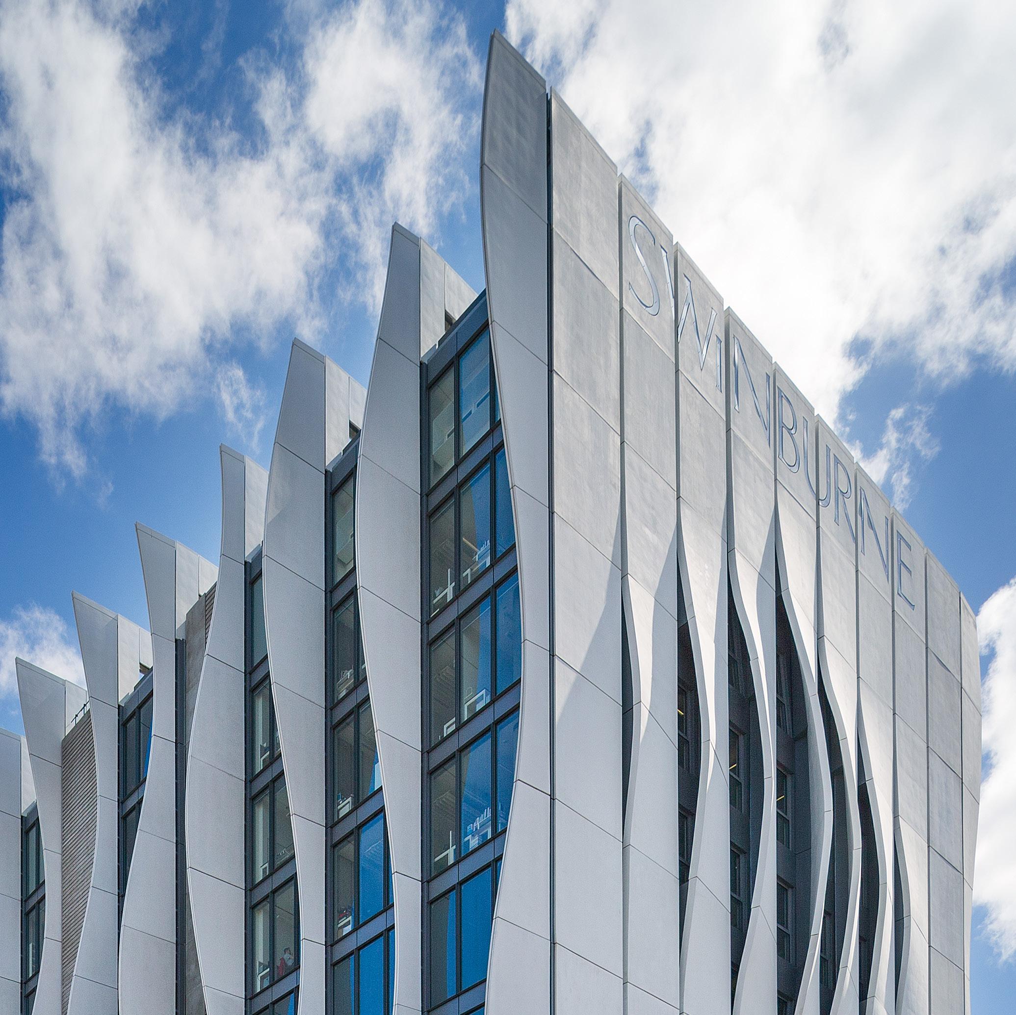 The School of Economics and Finance is housed over four floors and provides space for 60 individual academic offices, computer laboratories, postgraduate study areas and a city-style trading room. On the top is a floating glass box that contains graduate reading rooms and a common room that opens onto a large outdoor terrace.