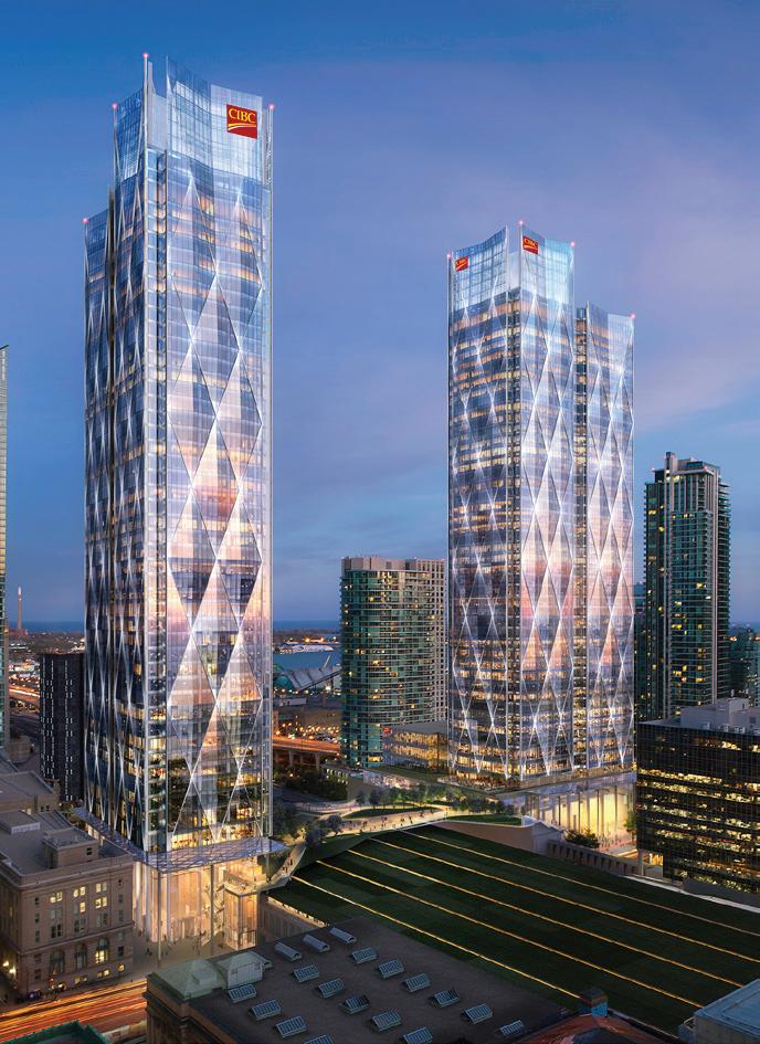 The towers will form the new headquarters for CIBC Bank, extending Toronto’s financial district towards Lake Ontario creating a ‘campus-style’ development on Bay Street. Bridges and walkways will link directly into Union Station.