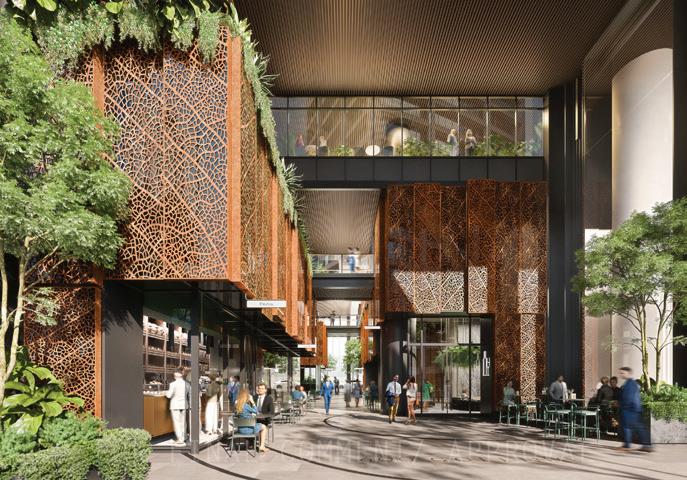 A through site connection, a genuine Melbourne laneway experience, and prime frontage on Collins Street with an impressive lobby activate the ground plane and improve the public realm at a busy pedestrian zone close to Southern Cross Station. The lobby, associated F&B and retail as well as various amenities including 3rd space, wellness centre and top quality end-of-trip facilities cater for the next generation of occupiers and workers.