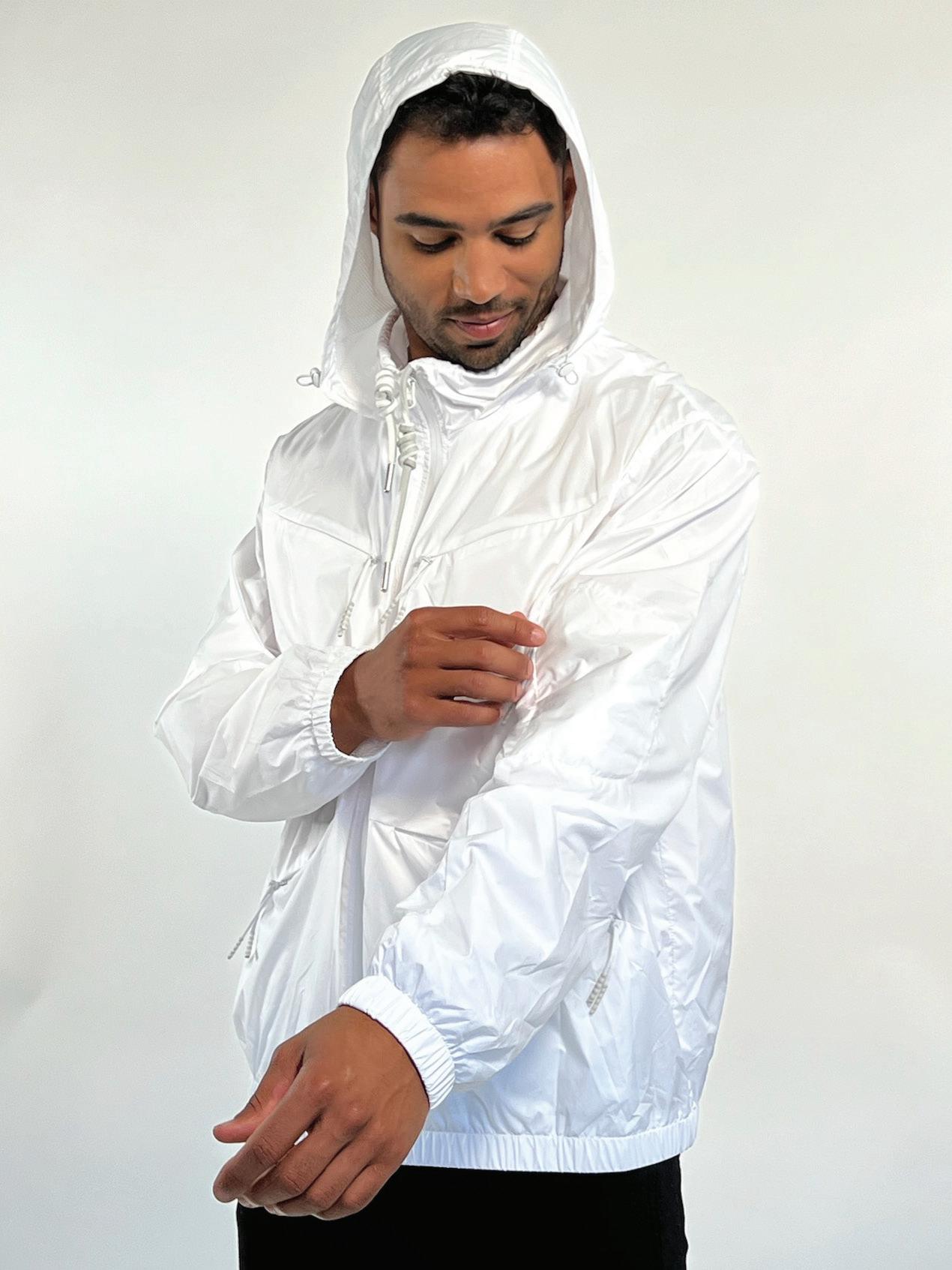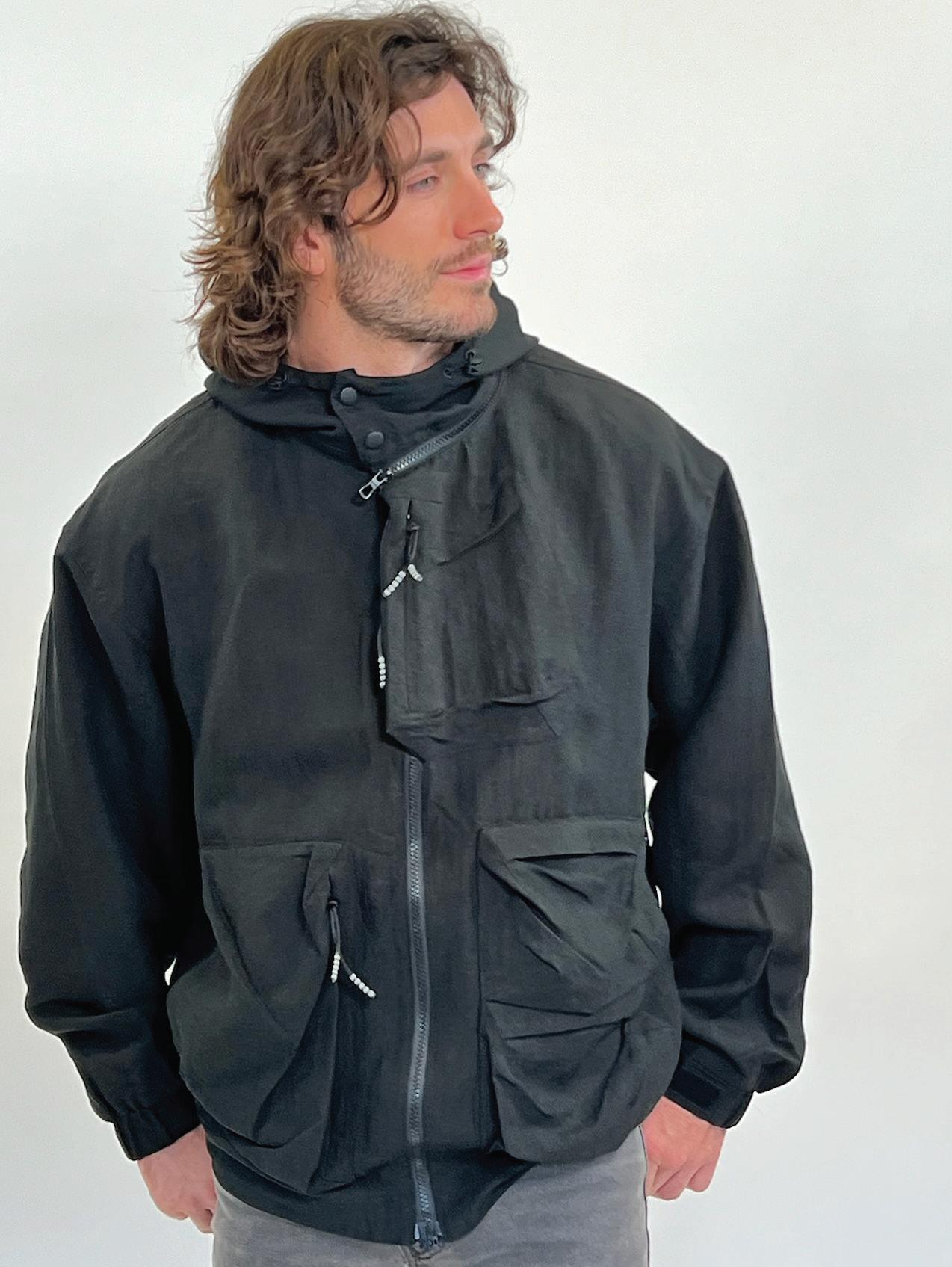 Description – As a standalone light spring jacket in flax, Tencel and rayon, the Swivel Hood is set apart by with a magnetic zipper that self-connects when the opposite sides are drawn together