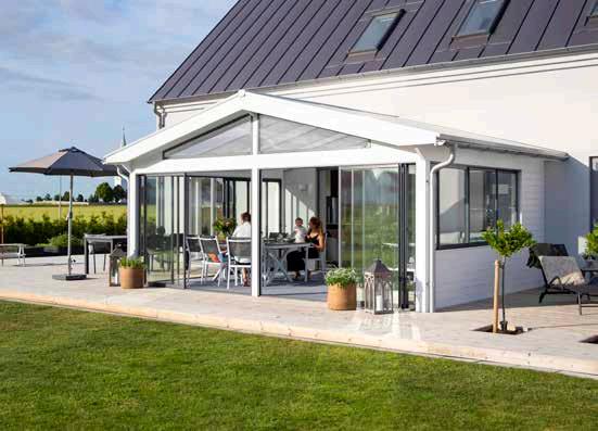 Ett uterum där ljuset flödar in och gränsen mellan ute och inne suddas ut. Flexibelt, lättplacerat och inte minst njutbart för alla!