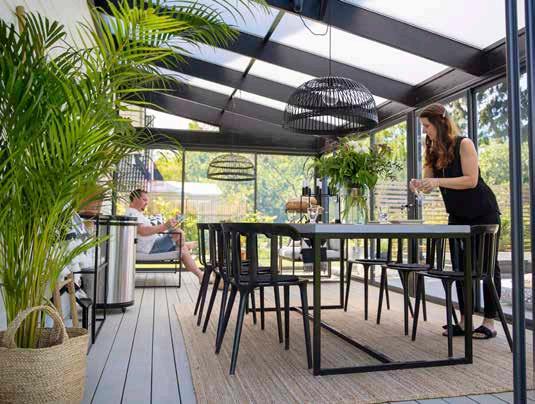 En udestue med halvtag – lyset strømmer ind og udvisker grænsen mellem ude og inde!