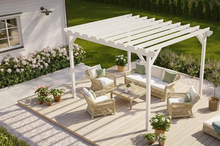 Du ser den poppa upp lite varstans och överallt, pergolan. När du väl suttit under den en ljummen sommarkväll eller en gassande sommardag, så förstår du varför. Pergolan ramar inte bara in din trädgård utan även himlen på ett fantastiskt sätt. Samtidigt ger den en härlig känsla av att sitta i ett ombonat utevardagsrum med möjlighet till skön skuggning. Våra pergolor i limträ levereras exaktkapade, samt med monteringsanvisning så att du enkelt kan bygga ihop den på egen hand.