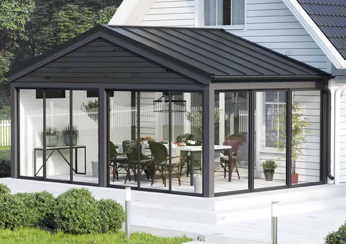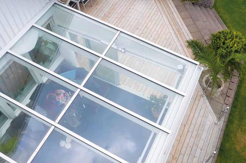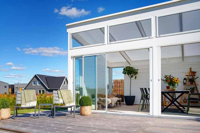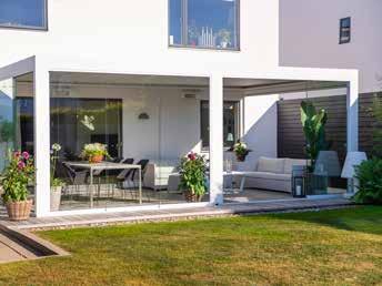 Som ett extra rum på din uteplats. Lägg till ramlösa skjutpartier för en mer vädertålig och mysig lounge som skydd mot sol, vind och regn.