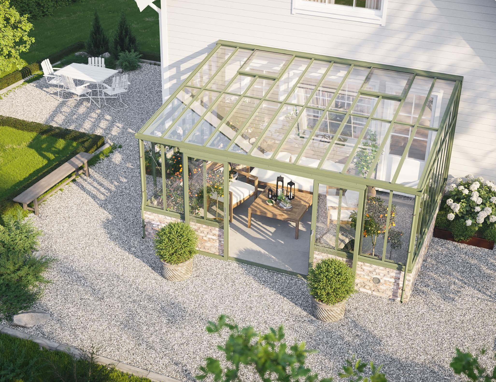 Tee lasiterassistasi ihana jatke kodillesi – huone, jossa voit viettää aikaa ja kerätä perheen ja ystävät yhteen. Lasiterassi tuo paljon iloa ja yhteisöllisyyttä. Valitse talvipuutarha-vaihtoehto, niin voit nauttia puutarhastasi ympäri vuoden.