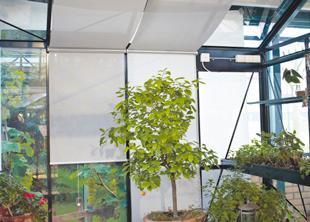 Monteres fra tagryg ned til tagfod, hvorfra det hænger yderligere 50 cm ned. Løber på skinner i taget. Komplet med elementer til montering. Passer også til Green Room-drivhus. 73 x 400 cm Art nr 4710S fra 1.356,:-
