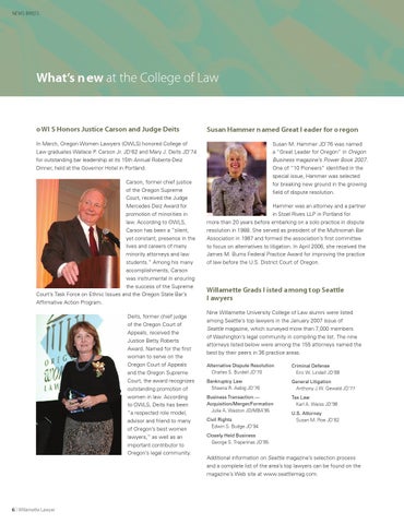 Willamette Grads L isted A mong Top Seattle L awyers Nine Willamette University College of Law alumni were listed among Seattle’s top lawyers in the January 2007 issue of Seattle magazine, which surveyed more than 7,000 members of Washington’s legal community in compiling the list. The nine attorneys listed below were among the 155 attorneys named the best by their peers in 36 practice areas. Alternative Dispute Resolution Charles S. Burdell JD’70
