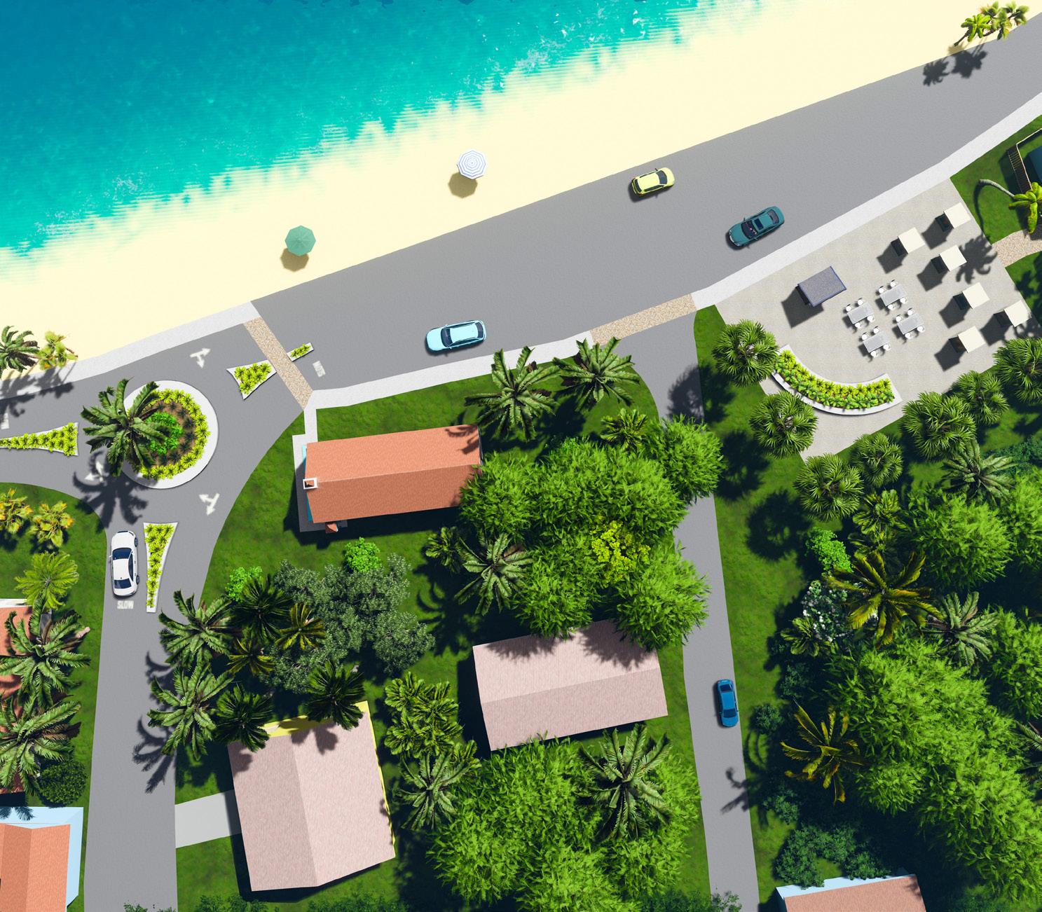 Roundabouts were essential to my development on Tarpum Bay. Locals needed assistance controlling car speeds and providing a safe environment due to the lack of speed control and signs. Roundabouts give a sense of safety, providing controlled cars and safe crosswalks. Roundabouts also allow for grand arrival points incorporating vegetation like a lavish palm tree in the center.