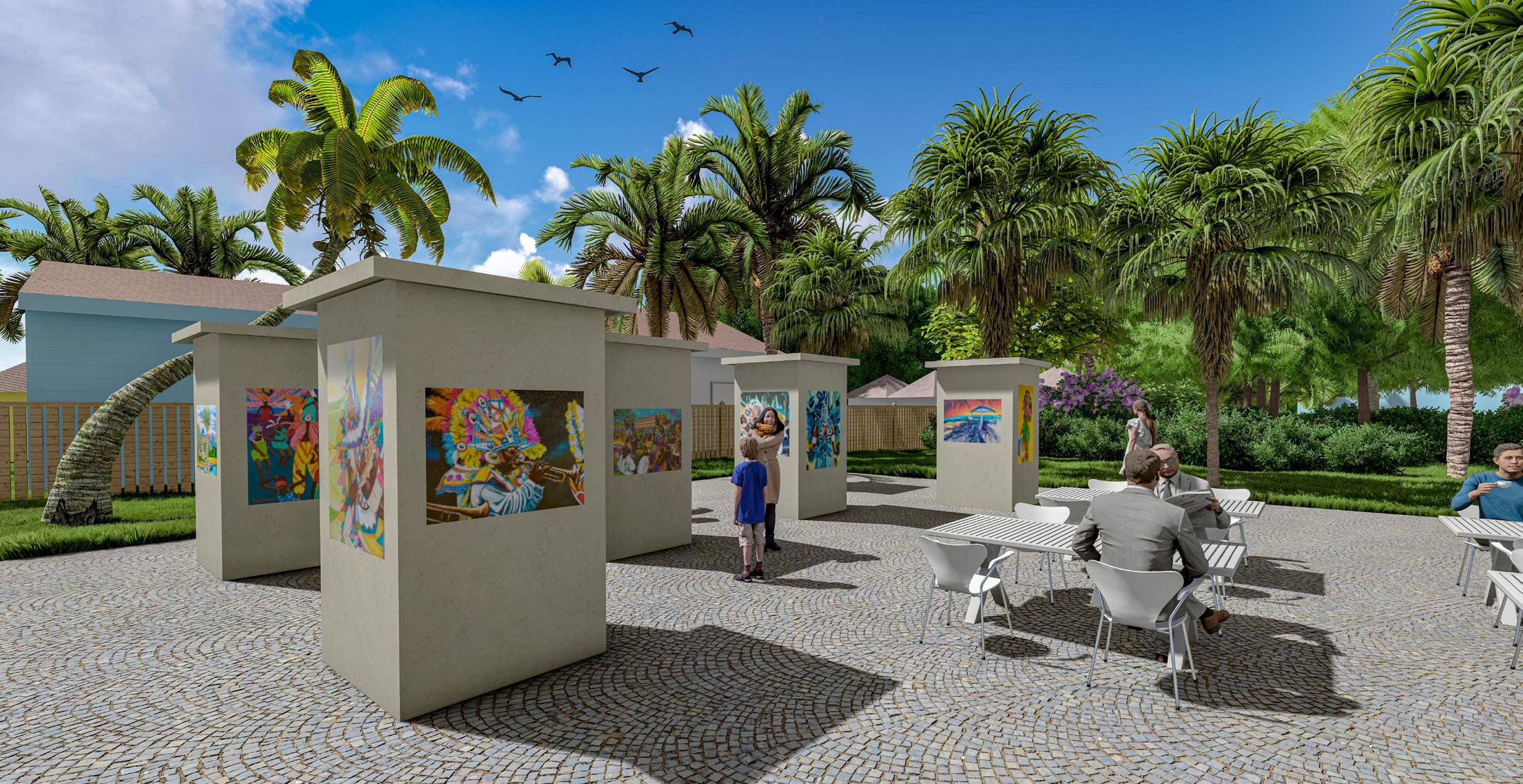 I wanted to develop a garden that not only showcased the native vegetation but created a community space utilizing an amphitheater for gatherings. An art display is located at the garden’s center, helping drive pedestrians to this area and ultimately connecting them with the Community Center. This provides an attraction to the history and culture of Tarpum Bay and ultimately provides a deeper connection to the town’s heritage roots.