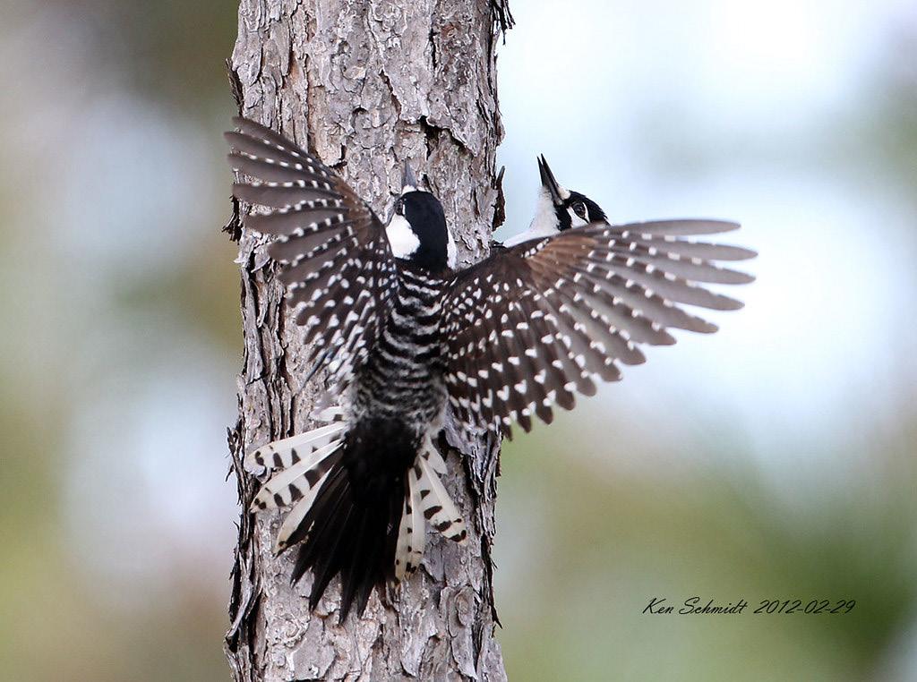 bird that finds the environment of the Hobcaw Barony to be a perfect environment. This bird is important to the culture of the researchers. The Woodpecker has an infamous spotted pattern on its wings, and when in flight, displays a black and white line patter. These benches play with the concept of the linear design of the Red-cockaded Woodpeckers pattern as it flies.
