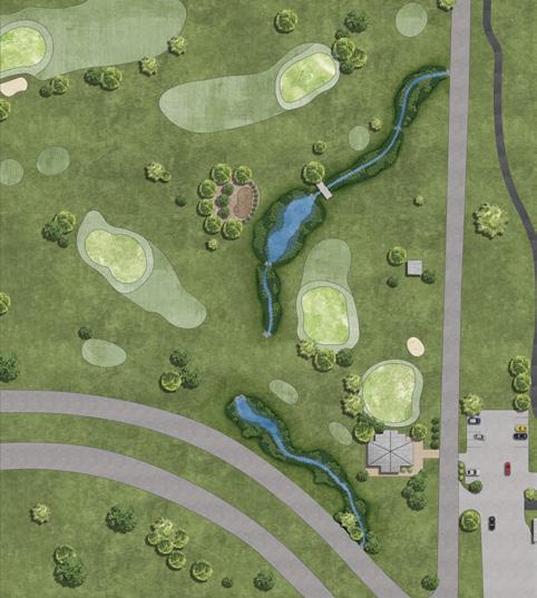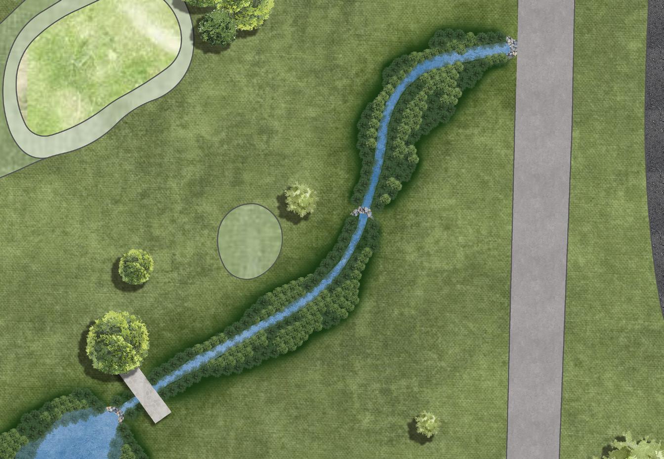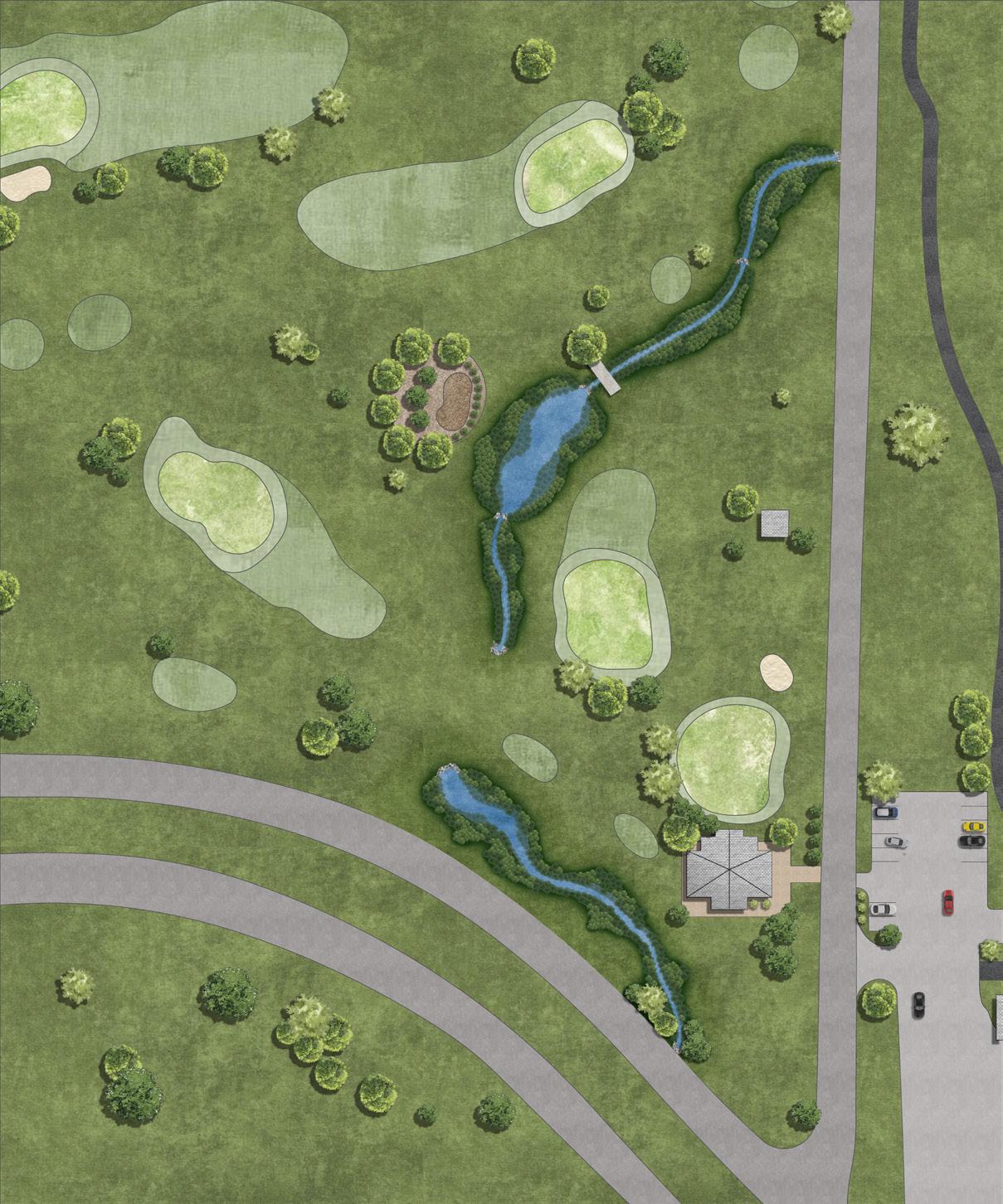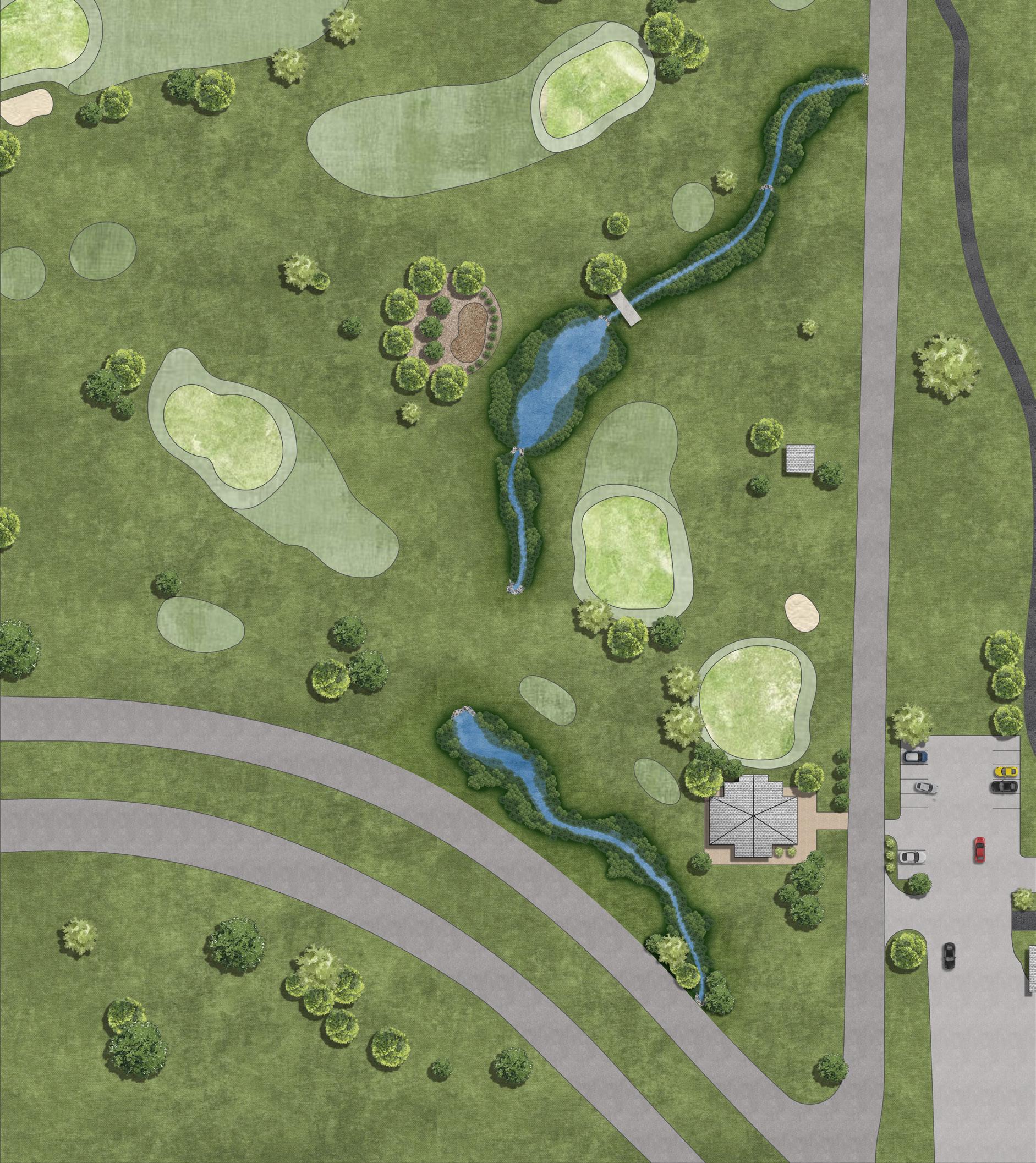I developed conceptual grading plans and site renderings to support the engineers in presenting repair and restoration alternatives of the degraded stream system through the golf course to City and Golf Course Staff. The renderings helped the engineering design team visualize the improvements’ potential spatial footprint and aesthetics and communicate design concepts to the golf course staff.