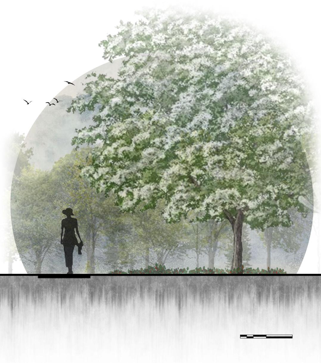 trees adjacent to the path, benches, and pergola are important so the students can immerse themselves with the land. The natives in the Hobcaw Barony are distinctly different from the ones at Clemson and South Carolina.