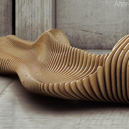 that seems organic in the environment. These wooden benches flow from upright positions to leaned back positions. This fluid motion allows for pedestrians to lay down and relax as well as get to work with they laptops for their research. Each bench was specifically designed for the location. Some of these benches wrap around turns which allow students to sit by themselves, as well as provide a space for students to talk and face one another from a distance.