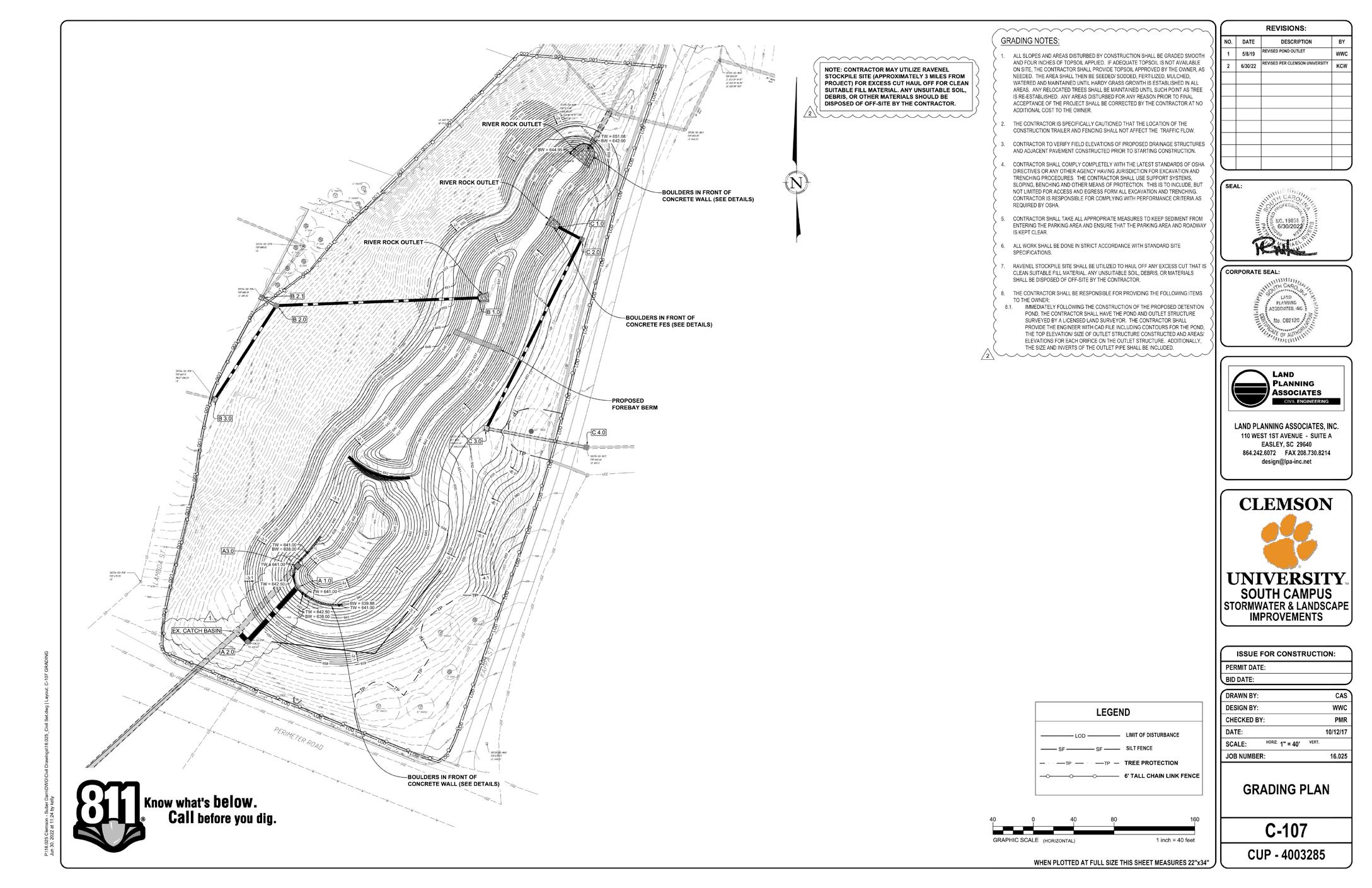 CLEMSON UNIVERSITY STORMWATER GRADING PLAN