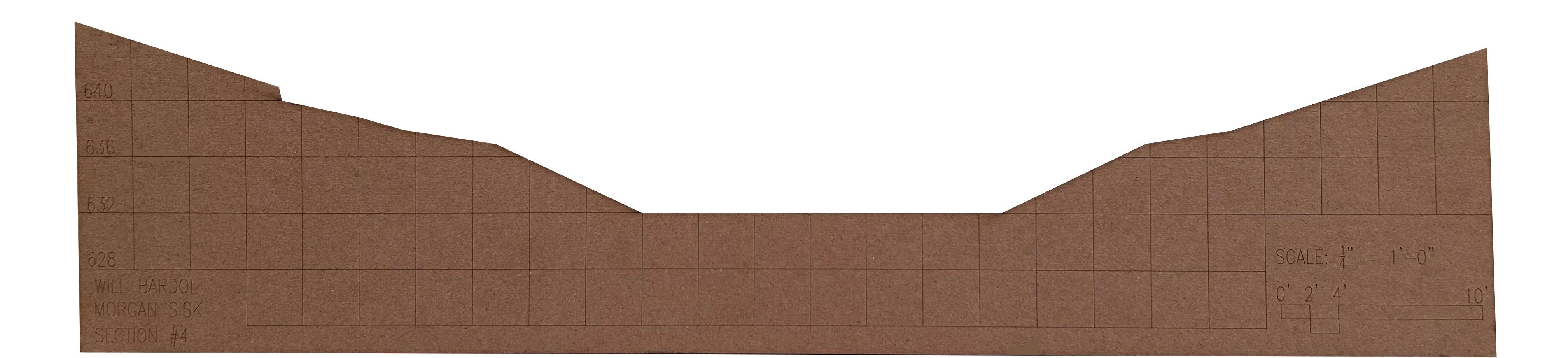 I created a 3d laser cut model using chick board to display the proposed topography. This model is in 1/4” = 1’-0” scale and shows elevation changed by every 4’.
