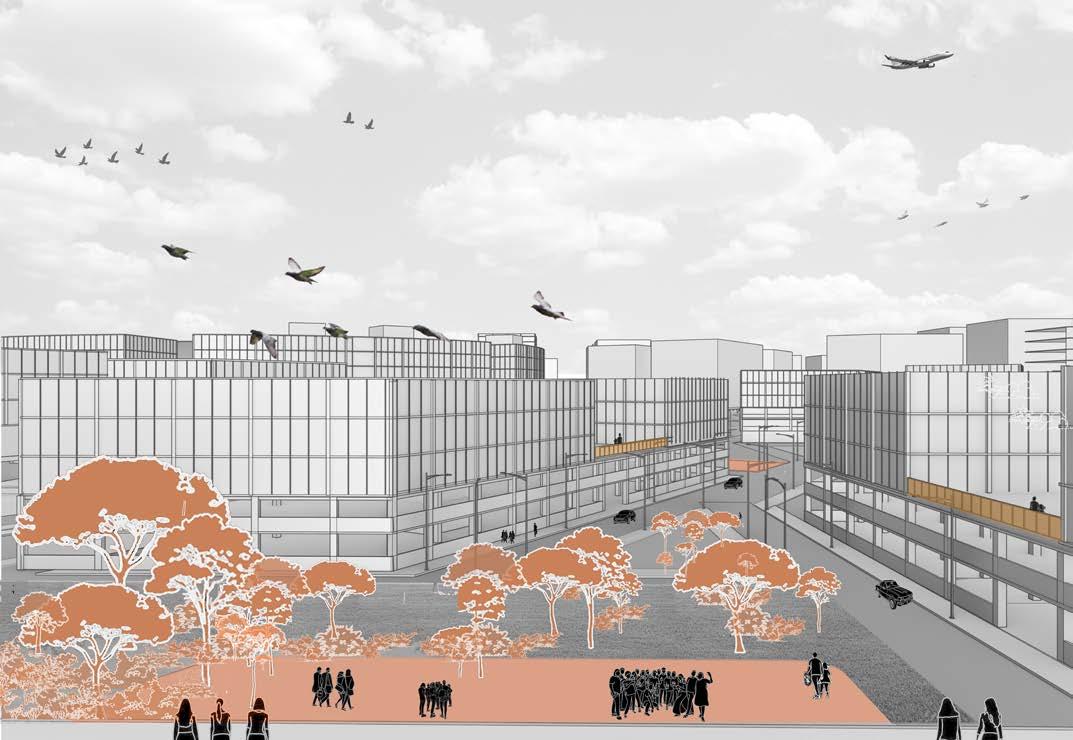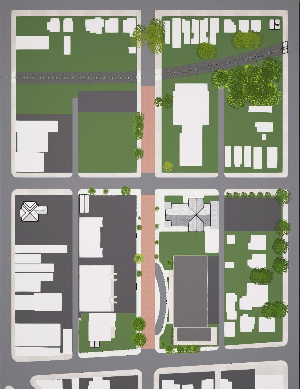 The project was then broken into phases of priority. Based on the scenarios and feedback given, a consensus of a new high school was first priority and the above location was chosen as the best and preferred placement. I took the lead in modeling the new high school, following with drawings, renderings, and diagrams.