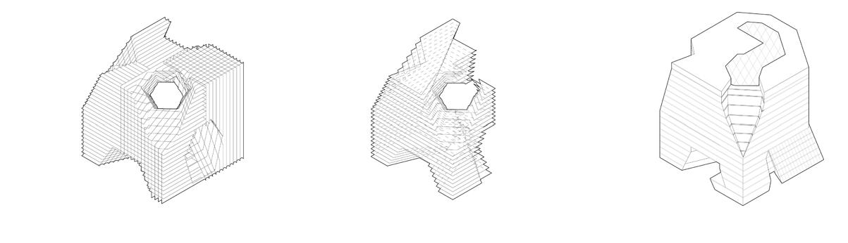 A large-scale residential proposal with particular emphasis on the relationship between the building and the public life of the community was developed from folded plate precedents with respect to a provided site location in Downtown Cincinnati, Ohio. This project is titled “HiLo Suites” because in life we are faced with a plethora of highs and lows but in the center of it all, the light that shines through and in us is what defines us, which translates to the characteristics of this building.