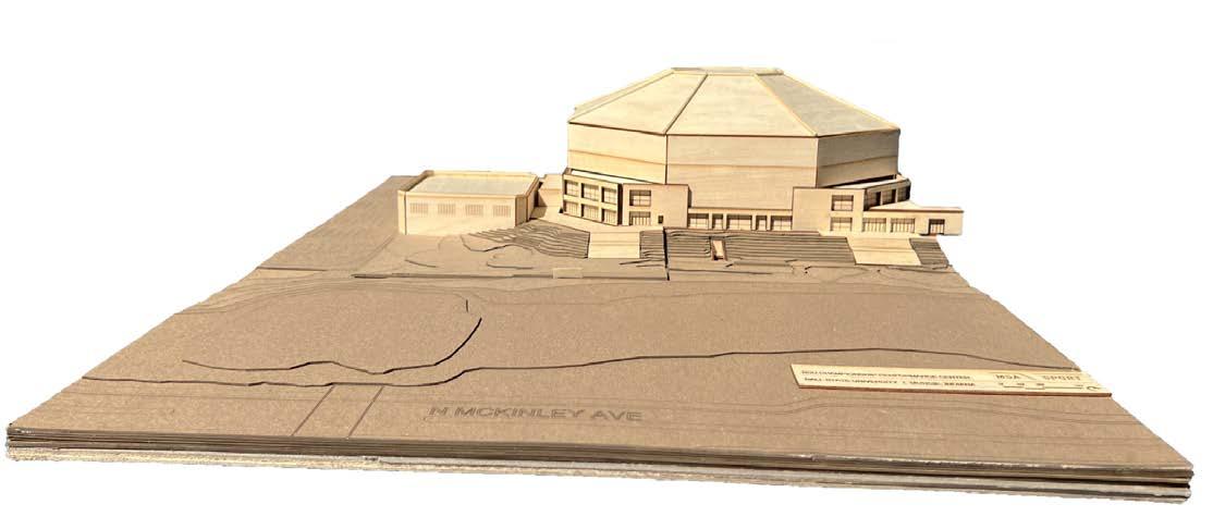 Built an 18x24 inch size physical model at 1”=30’ scale during the preliminary design phase that was used to propose a new sports performance center for Ball State University. The specific site area is adjacent to Worthen Arena and the Dr. Don Shondell Practice Center. Created an removable piece of the model that shows the existing site’s features that can be exchanged out with proposed design concepts.