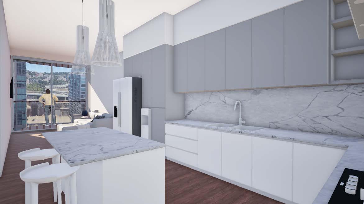 Interactive Plazas: The innovative design of the platforms provides unique vantage points overlooking interactive plazas below. These plazas likely host various activities and events, fostering a sense of community and encouraging social interaction among residents.