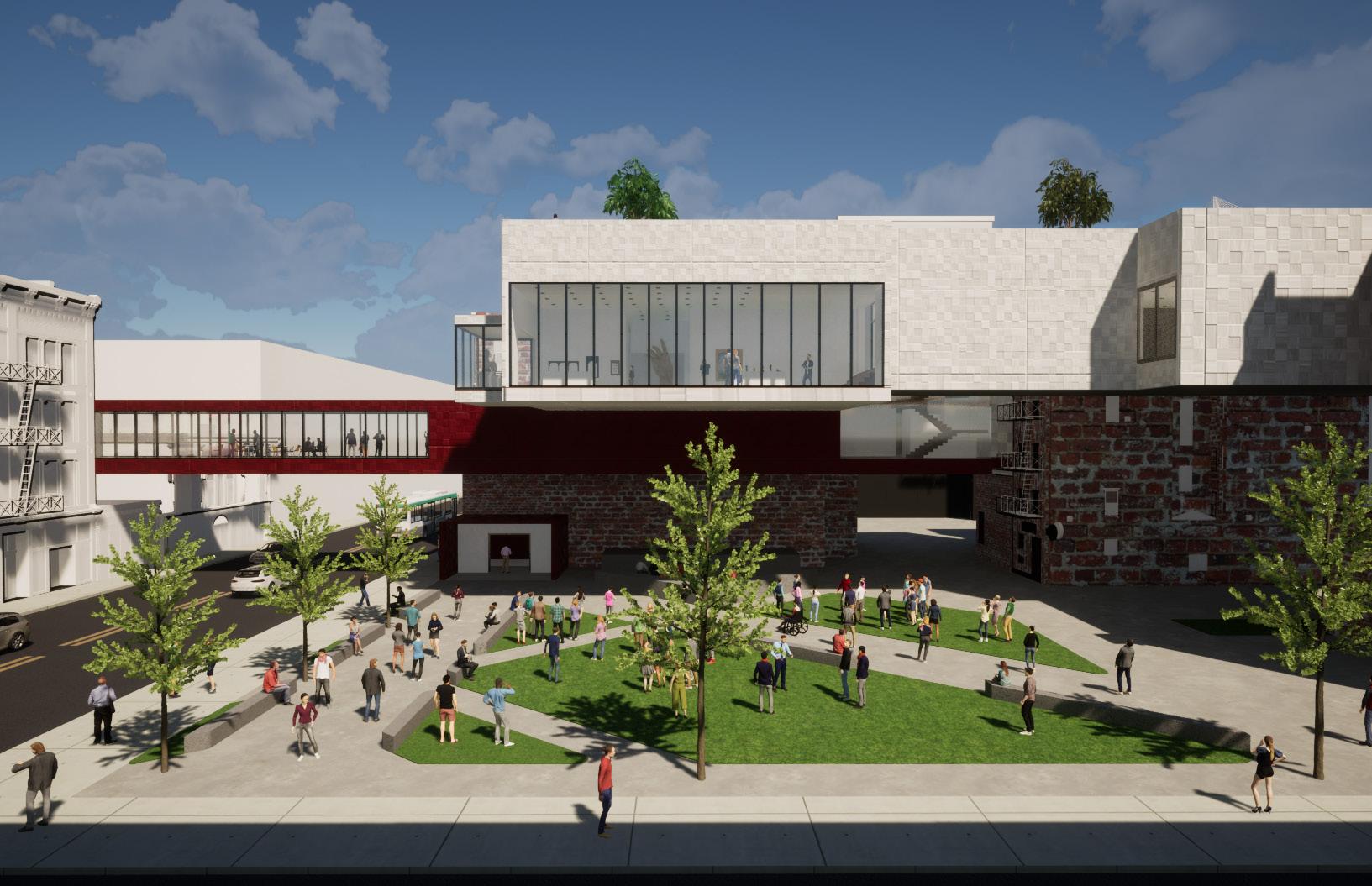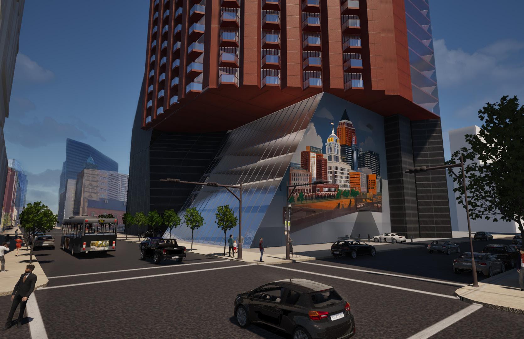 With the skybridge on both ends of the building, it is used to connect the Art Academy on a less active side on Jefferson Street and a popular restaurant/bar on a very active Vine Steet.