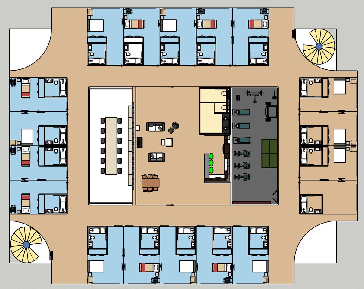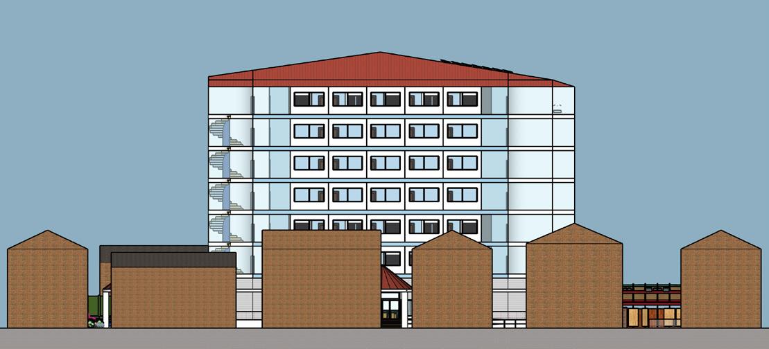 The objective of this project was to design a Senior Living facility based off a site location in Downtown Lexington, Kentucky. I titled this project “More Life Nursing Home” to combat the stigma and stereotypes of nursing homes being a place where you go to just die. Although, like many others, I would prefer to not have to put my loved ones in a nursing home but if have to, I rather it be a place that makes life worth living even longer. With implementations of pivotal elements of life, such as poetry,reading, writing, exercise, games, music, healthy interactions, food, and more, I explored including a library, a gym, outdoor space as well as the necessities of cafeteria/diner, rooms, and such. The community a building is a part of plays a huge part in its development, therefore, I explored the idea of a porch and areas where the community can be very interactive with the residences. Just like the community, the workers are a major part of the lives of the residences, therefore, making sure they are in the best possible environment to be able to do their jobs well, was important.